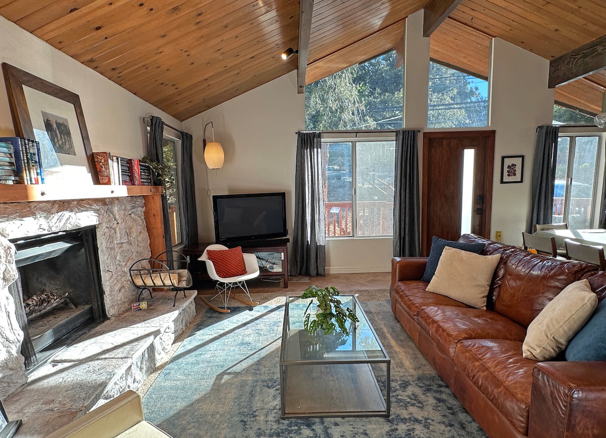 Explore our stylish and cozy, pet-friendly mountain cabin in Wrightwood, CA. Enjoy the new 4-person hot tub amid the pines. Only 1.5 hrs from LA, 2 hrs from San Diego, and 10 mins from Mt High. With 3bd, 2.5 ba, luxury linens, and a cul-de-sac location by Angeles National Forest, relax and reconnect with nature. Walk to town, ski/snowboard, or hike the Pacific Crest Trail. Unwind by the outdoor or indoor fire and recharge. Plus, a *NEW EV Charger.🔌