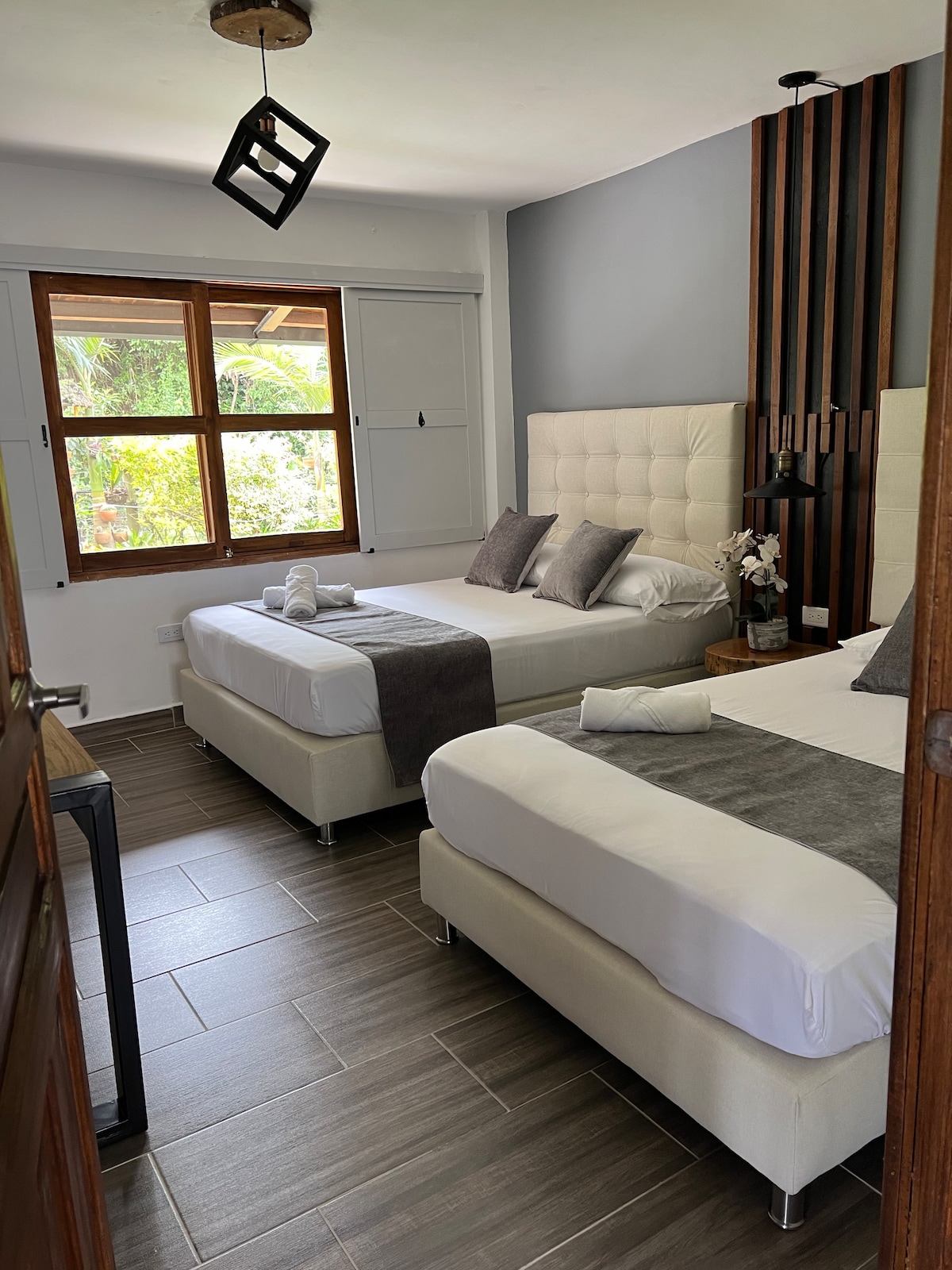 2 otaqdan ibarət ölkə mənzili. Hər birində bir nəfərlik çarpayı və iki nəfərlik çarpayı, yemək otağı və mətbəx , isti suyu olan 2 hamam-tualet var. Yerixo Əsas Parkına 6 dəqiqəlik məsafə Yerixo Əsas Parkına 20 dəq. məsafədə, 1,5 km məsafədə quşların səsindən və kəndin sakitliyindən, oxumaq üçün yaşıl sahələrdən zövq alın Nəqliyyat : taksi 4 nəfər siçan motosikleti 3 nəfər chiveros (cip) 8 nəfər