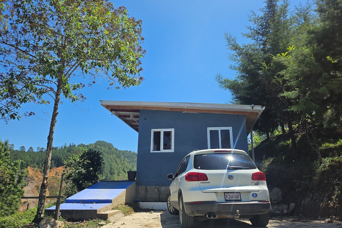 Un lugar acogedor en medio del campo a 20 min. del centro de Cobán, ideal para descansar y disfrutar de la naturaleza en medio de un bosque húmedo. Un lugar especial para los AMANTES DE LOS PERROS, ya que hay 9 cariñosos perritos rescatados, y para avistamiento de aves. La estancia es muy segura, limpia y cuenta con todas sus comodidades, TV por cable, dos habitaciones, cocina comedor, sala, 1 baño completo, un lindo porche y parqueo propio para 1 carro. POR FAVOR LEA LAS REGLAS DE CASA!!