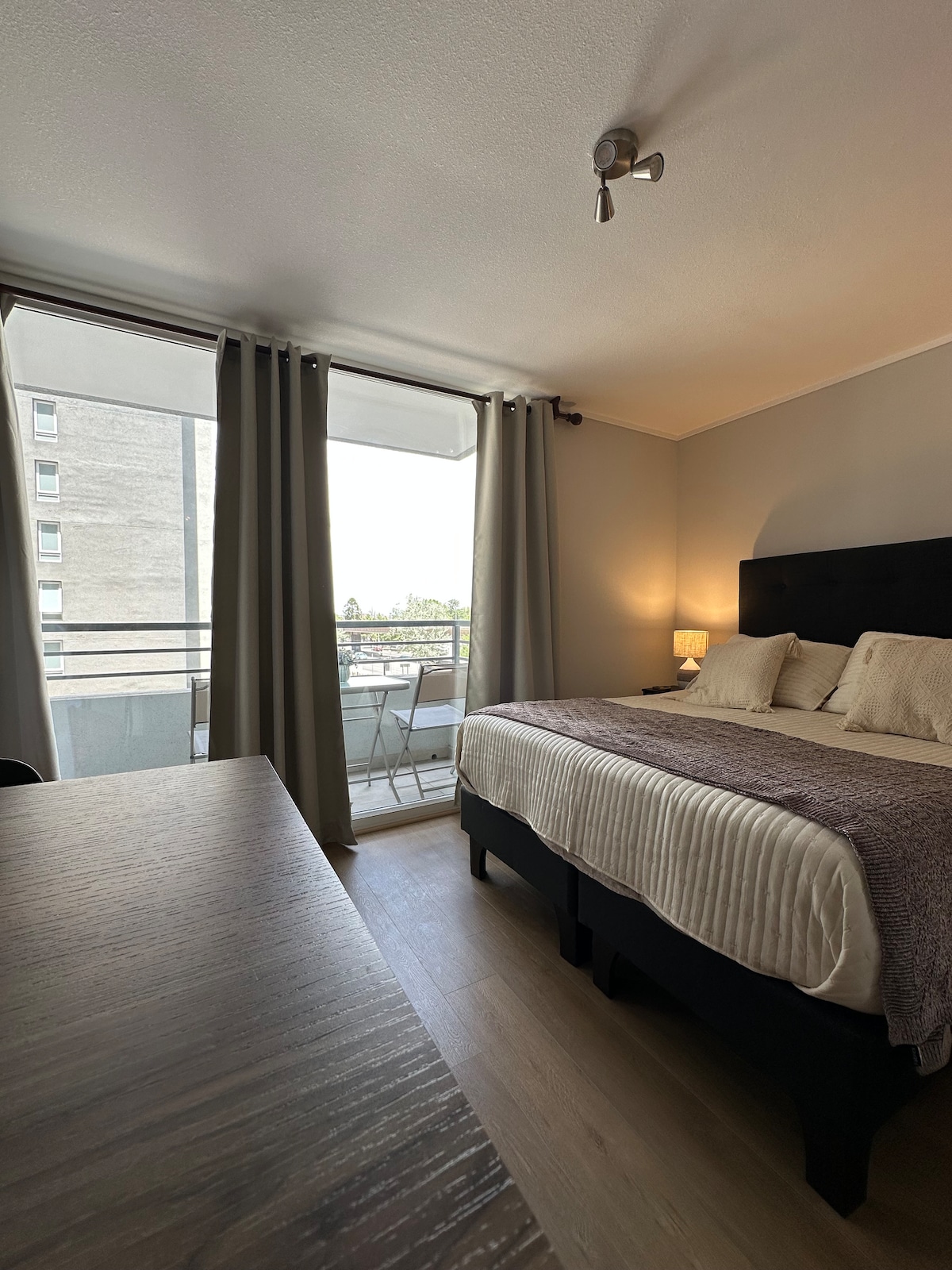 Disfruta de un tipo estudio perfecto para descansar. Muy acogedor y con todas las comodidades necesarias para que no te falte nada durante tu estadía. Al estar de viaje una de las cosas más importantes es tener una buena ubicación, acá tendrás la oportunidad de tener justo enfrente una de la líneas de metro con mejor conectividad, estación Ñuble donde combinan línea 5 y 6. Además de variedad de comercios y restaurantes a pocos pasos del edificio. Queremos que en tu viaje sea lo más cómodo.