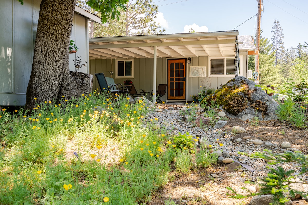 Located 32 minutes from the South entrance of Yosemite, this 1 bedroom, 1 bath unit with a living/dining room, kitchenette and outdoor area with swing seats, hammock, grill and bar, is a great basecamp to explore the area. We are located 7 minutes from downtown Oakhurst, which has all of your grocery and dining needs and 18 minutes from Bass Lake. Tips on trails and local attractions from former Yosemite Rangers.