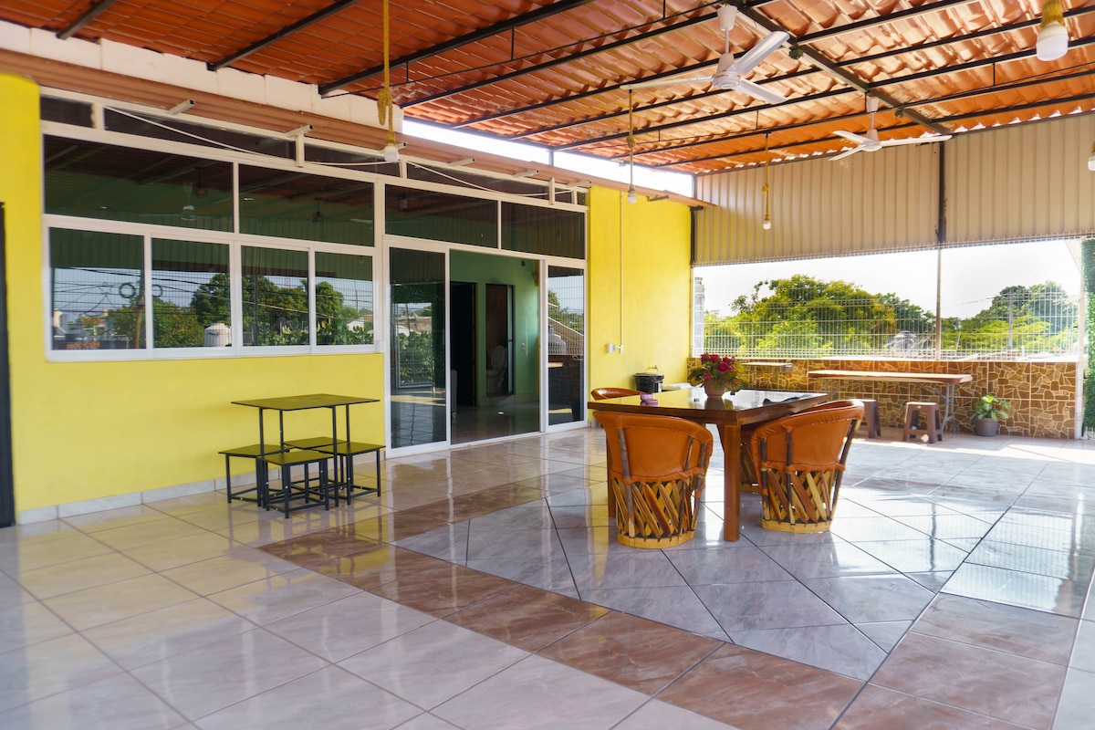 Evimiz hər kəs üçün geniş və genişdir. Yeni yenidən qurulmuş ev və bütün mebellər yerli sənətkar tərəfindən hazırlanır. Hovuz ətrafında, qamakda və ya yemək sahəsi, manqal, bar və daxili istirahət zonası olan böyük palapamızın altında dincəlin. Arxa qapı kilometrlərlə sakit qara qum çimərliyinə aparır! Gün batdıqdan sonra uşaqlar böyük 12 nəfərlik masada oyun oynaya bilər, valideynlər isə televizorun qarşısındakı böyük ölçülü divanda qəza törədə bilərlər. Qeyd: Milad və Semana Santa zamanı minimum 1 həftə