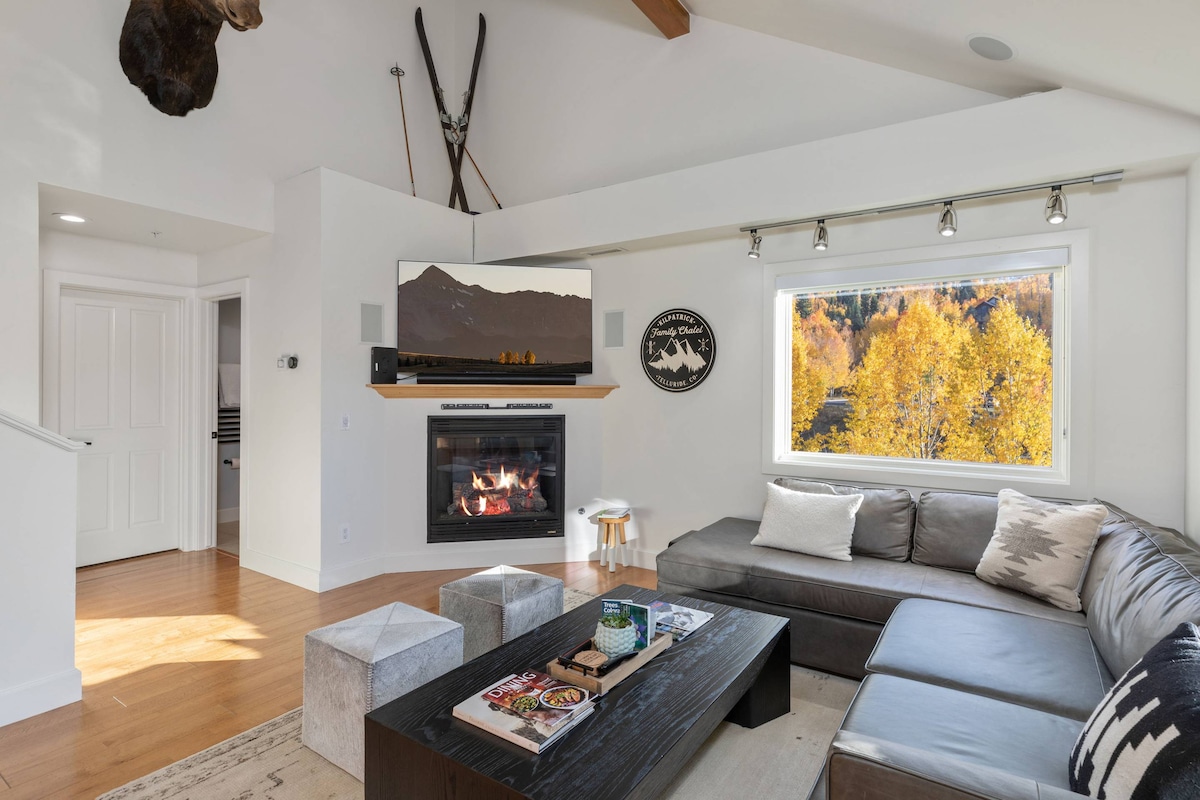 This beautiful condo is conveniently located on the stunning Valley Floor. A 2 mile walk, bike, bus, or drive to Telluride. Enjoy great natural light, a private deck, fireplace, vaulted ceilings, and comfy beds. The environment is ideal for couples, solo adventurers, business travelers, and families looking for a place to relax after skiing, hiking, or enjoying the summer festival. With a full kitchen, bathroom (with bathtub), washer and dryer, and everything you need for your stay.