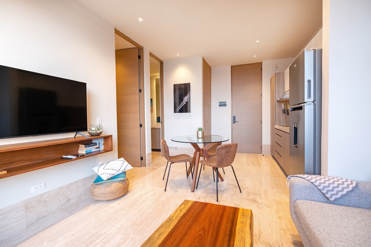 Cozumelin mərkəzində dəbdəbəli 2 otaqlı mənzilimizə qaçın! Möhtəşəm terraslar, müasir yaşayış sahəsi və yüksək keyfiyyətli imkanları olan bu mənzil dincəlmək və adanın sakitliyini təmin etmək üçün mükəmməl yerdir. Düz ekranlı televizorun qarşısında dincəlin, dəbli altı nəfərlik masada nahar edin və ya tam təchiz olunmuş mətbəxdə öz yeməklərinizi hazırlayın. Rahat yataq otaqlarımız rahat gecə yuxusu üçün Kraliça ölçülü çarpayılar, ayrıca terraslar və dəbdəbəli yataq dəstləri ilə öyünə bilər.