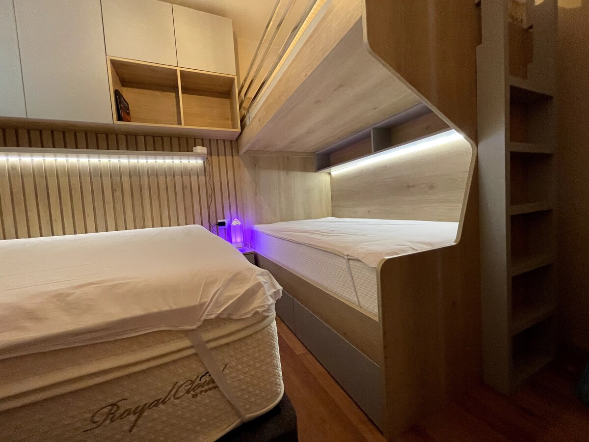 Park mənzərəli, geniş, rahat və çox təhlükəsiz yeni mənzil. Burada 2 yataq otağı, divan-çarpayı, qonaq otağı və tam təchiz olunmuş mətbəx var. Liftli bina. Wi-Fi, Netflix və qəhvə, çay, çobanyastığı, anason və şəkər ilə kontinental səhər yeməyi daxildir. Lazım olan bütün imkanlarla rahat, sakit qonaqlamalar üçün idealdır. Özünüzü evinizdəki kimi hiss edəcəksiniz!