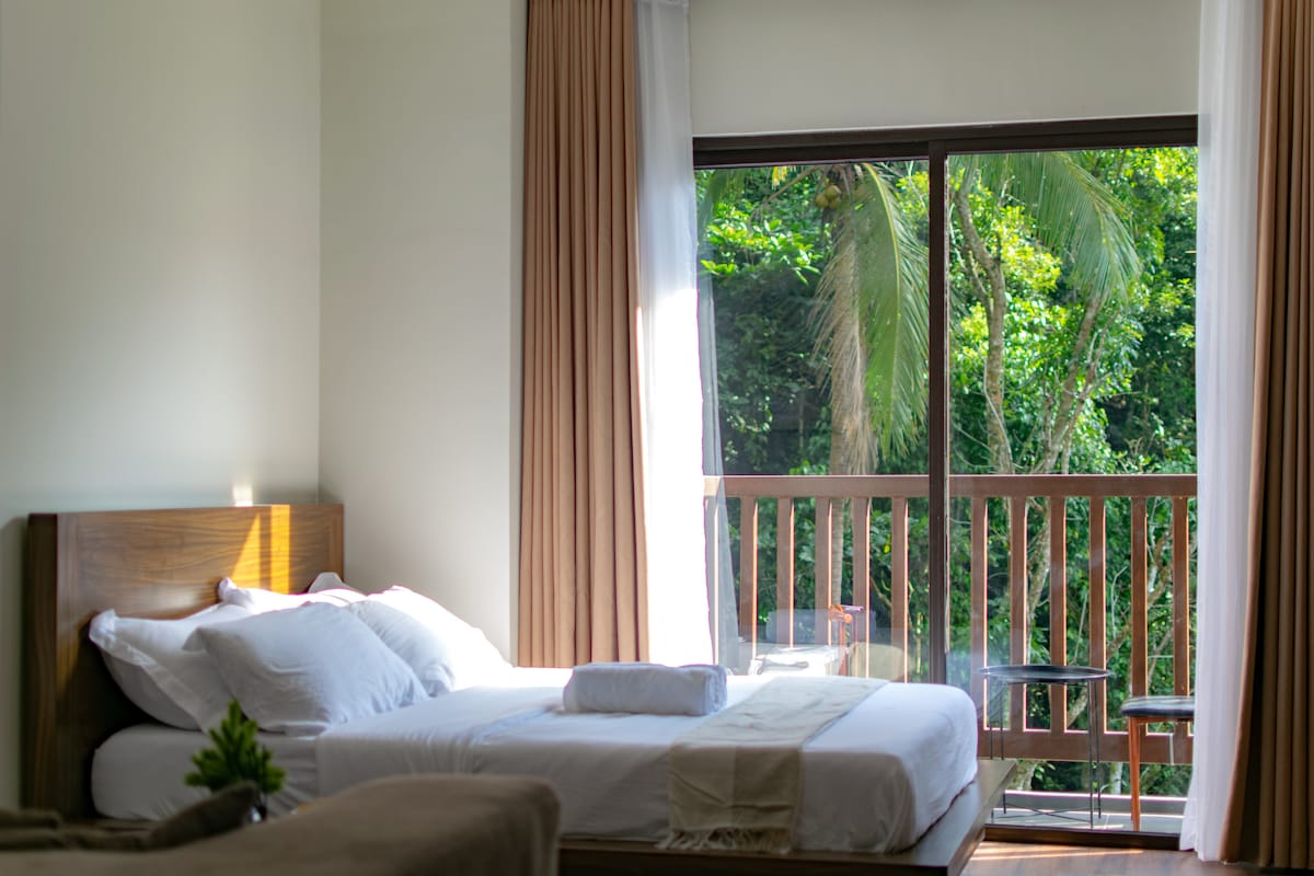 Banahaw çayı boyunca yerləşən yamyaşıl dərə divarının və əzəmətli Banahaw dağından büllur təmiz suyun əsrarəngiz mənzərəsini diktə edir. Təbii gözəllik və müasir tikililərin birləşdiyi çayın ön tərəfi əmlakın unikal xüsusiyyətləridir. Nəzərə alın ki, əmlak yol boyunca deyil, qonaqlar əmlaka çatmaq üçün 3 dəqiqə piyada getməlidir. Parkinq yeri əmlakın daxilində deyil. Komandamız parkinqiniz və işçiləriniz üçün sizə yardım etmək üçün gəlişinizdə sizinlə görüşəcək