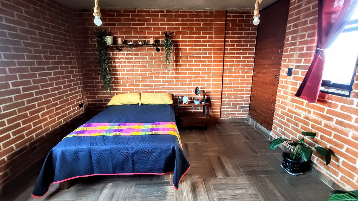Çolula piramida və arxeoloji zonadan yarım küçə aralıda yerləşən birinci mərtəbədə gözəl süita. Sizə ƏSAS YEMƏKLƏRİ, eləcə də mikrodalğalı soba və minibar HAZIRLAMAQ üçün öz hamam otağı olan kiçik mətbəxi olan iki nəfərlik otaq təklif edirik. 🛎️VACİB QEYD: - Ləğvetmə siyasətlərini, YERLİ QAYDALARI və GİRİŞ ÜÇÜN diqqətlə OXUMAQ İSTƏRDİNİZ. -BİZ sizin və mənim kimi səyahətçilər üçün nəzərdə tutulmuş kiçik BİR məkan bizik. DİQQƏT VƏ ANLAYIŞINIZ ÜÇÜN TƏŞƏKKÜR EDİRİK.🤝