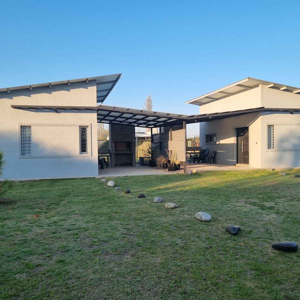Ətrafın sakitliyini əks etdirən çoxəsrlik prospektlər, dağlar və su güzgüləri arasında tarixi və mənzərəli bir kənd olan 25 de Mayo villasının sehrini yaşayın. Amaru kottecimiz sizi açıq mənzərəli, yerli florası olan bağı və mövsümi hovuzu ilə gözləyir. Bu, dincəlməyiniz, təmiz hava ilə nəfəs almağınız və mənzərənin harmoniyasından zövq almağınız üçün sevərək dizayn edilib. Çaya, şərab zavodlarına və şərab marşrutlarına yaxın, təbiətin, tarixin və rahatlığın qovuşduğu Mendozanın unikal guşəsidir.