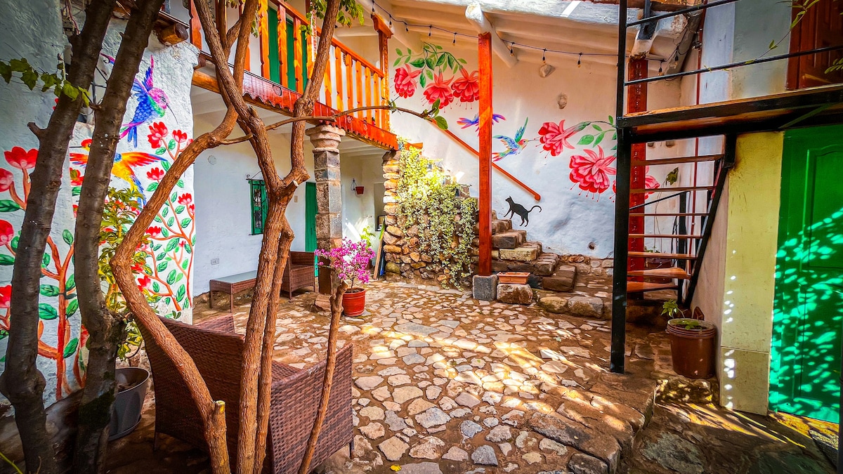 Canlı Tarixi Mərkəzdən və Plaza de Armasdan cəmi 10 dəqiqəlik məsafədə yerləşən, geniş bağı olan füsunkar istirahət məkanı olan rahat kabinəmizə xoş gəlmisiniz. Romantik və rahat tətil axtaran ailələr, dostlar və ya cütlüklər üçün ideal olan bu gözəl evdə rahatlıq və rahatlığın mükəmməl qarışığından zövq alın.