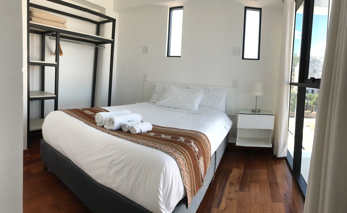 Kusko və Maçu Pikçunu kəşf etmək ✨ üçün mükəmməl bazanız ✨ Xoş gəlmisiniz! 9-cu mərtəbədəki bu müasir mənzil And dağlarının möhtəşəm mənzərəsini, rahat atmosferi və Kuskonun ən yaxşı yerlərini görmək istəyən turistlər üçün mükəmməl strateji mövqe təklif edir. Uançaqın sakit və təhlükəsiz ərazisində yerləşən, taksilərə, ictimai nəqliyyata və Maçu Pikçuya, Müqəddəs Vadiyə, 7 Rənglər Dağına və daha çoxuna asanlıqla giriş imkanı olan tarixi mərkəzdən cəmi 15 dəqiqəlik məsafədə olacaqsınız.