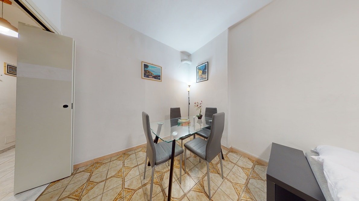 Wake up to the morning light in a historic building in Piazza Giovine Italia. High ceilings create a sense of space, while the living room, with wood paneling and a panoramic balcony, invites you to relax. The modern kitchen and dining area are perfect for intimate dinners, while the bedroom and spacious bathroom offer a serene retreat. A charming oasis where history and comfort meet, for an unforgettable stay.