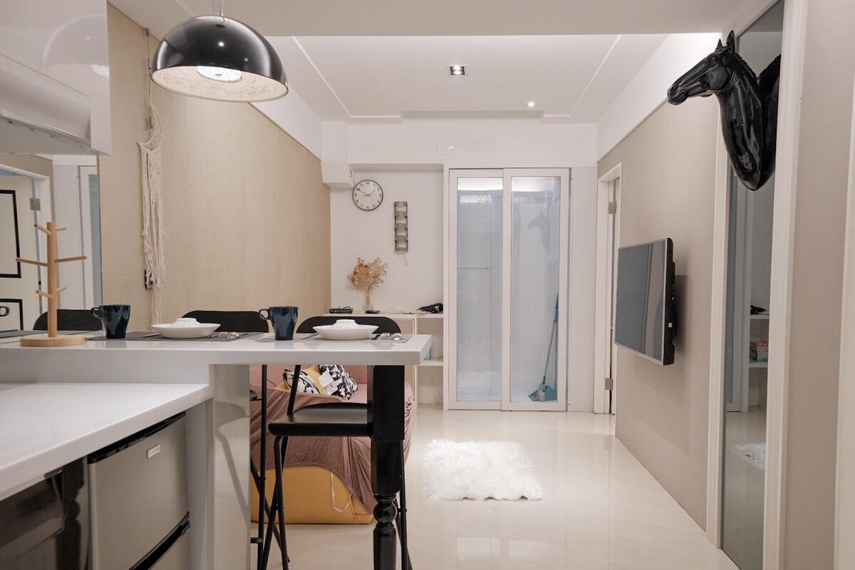 最多可供4人入住。目前配置一張雙人床和一張雙人沙發床(第3人起使用)、和一張餐(書)桌。 預訂後請提供護照登記,感謝支持♡ 歡迎來到西門町裡難得的鬧中取靜、安全又舒適的家! 乾濕分離的浴室中罕見的同時擁有一個「按摩浴缸」 + 一座「淋浴沖澡間」供您作不同選擇。房間內有全新的「滾筒洗衣烘乾機」、微波爐、電陶爐、冰箱、Good le TV電視、餐具,社區內有垃圾集中地,不需要每天定時追垃圾車,真的很方便。您只需要帶一只皮箱就能輕鬆入住。 公寓座落在西門町商圈中心內,散步8分鐘即到捷運西門站。面向熱鬧、燈火通明的街道上,大廳有24Hr保安,消防設施安檢合格、磁卡管控電梯樓層、明亮採光的飯店式走道、獨立門戶安全有隱私。 四周有多家24小時便利商店、美味小吃店、麻辣火鍋、吃到飽餐廳、牛肉麵、滷肉飯、麥當勞、電影街、藥妝店、腳底按摩......一條街上商店林立、應有盡有。距離「誠品」、「星巴克」、「無印良品」、到日本必逛的「DON DON DONKI • 唐吉訶德」步行更是只要2分鐘。健身房、市場、停車場都在附近,生活機能優越。 旅居台北,沒有負擔、絕對的放鬆,自在便利 !(*ˉ︶ˉ*)