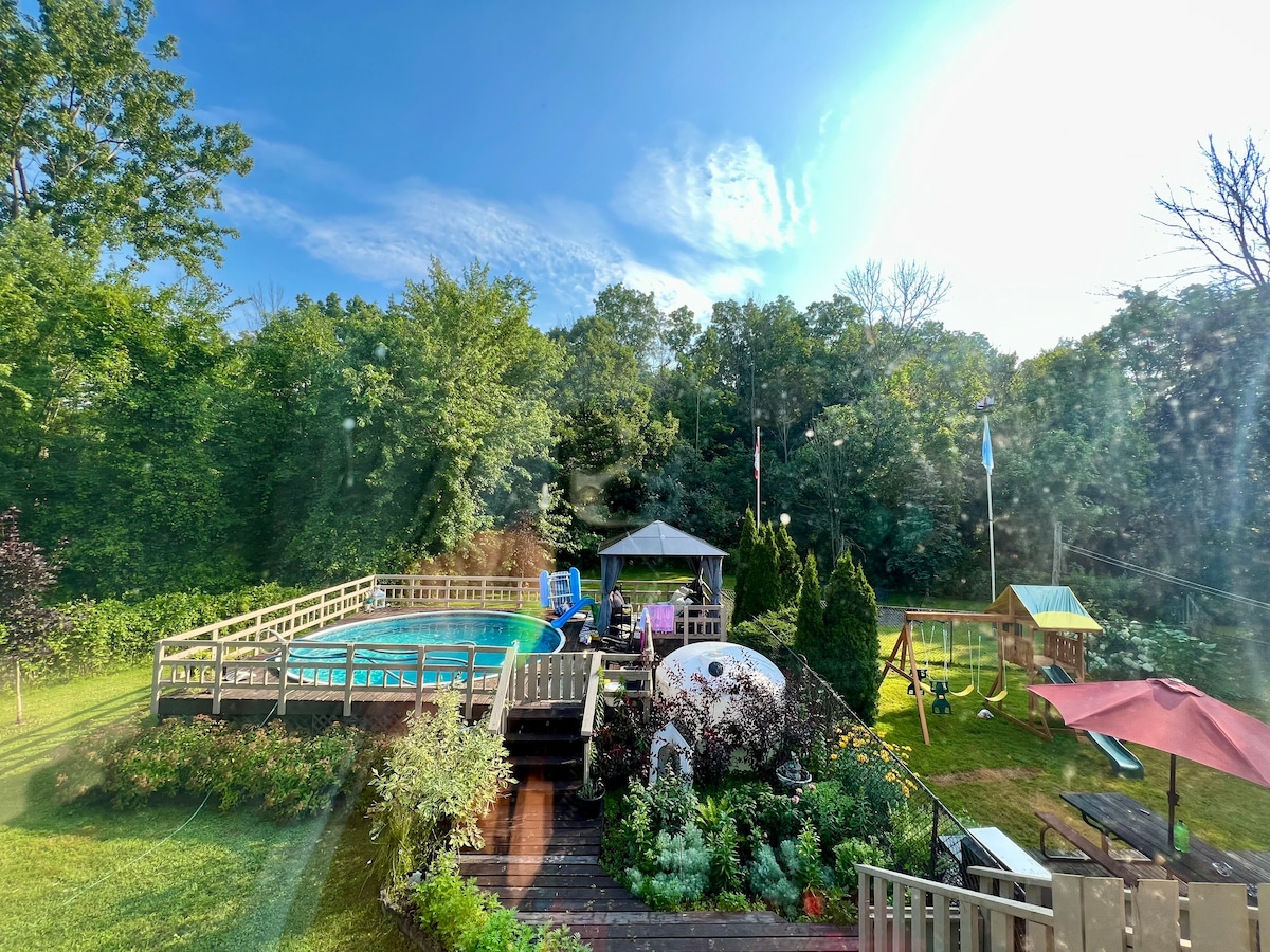 Qızılbalıq çayı üzərində yerləşən bu xüsusi xüsusi tikilmiş lojada əsas mərtəbədə taxta tir tavanları var və ona isti və rahat hisslər bəxş edir. Yerli çimərliklərə və əyalət parklarına qısa bir yol. Çaya baxan yanğın çuxurunun ətrafındakı mənzərədən zövq alın. Çaya baxan cakuzidə istirahət edin və gecə ulduzları seyr edin. Həqiqətən də dincəlmək və dostlarınız və ailənizlə yenidən əlaqə qurmaq üçün təbiət qoynunda tətil. LCBO, çörək, yeməkxana, aptek və ərzaq mağazası hamısı 5 dəqiqəlik məsafədədir.