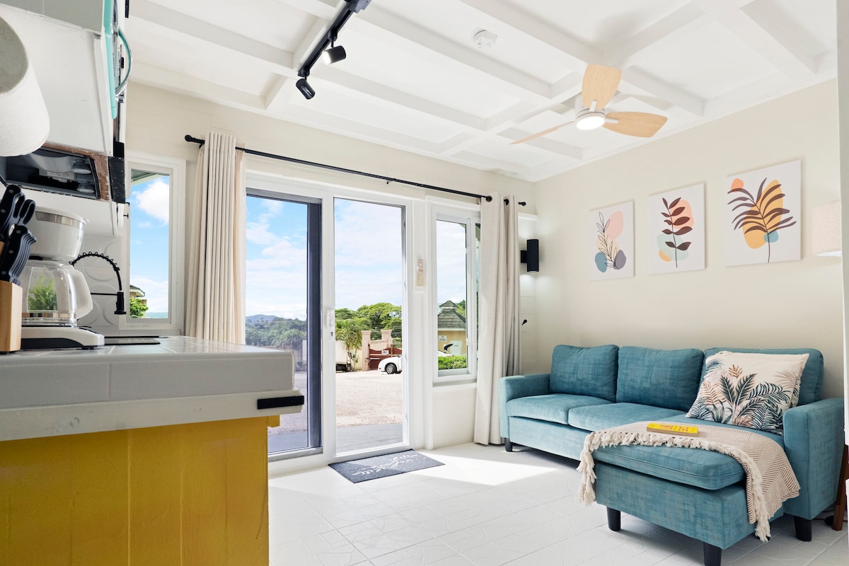 Dəniz kənarında HideAway-ə xoş gəlmisiniz. Burada istirahət edə və adadan zövq ala biləcəksiniz. Bu studiya mənzili kondisioner, otaq ventilyatoru, tələbata uyğun isti su, paltaryuyan maşın, Smart TV, WIFI, komfortlu Kraliça çarpayısı və yemək hazırlamaq üçün tam təchiz olunmuş aşpazlıq məkanı olan evin bütün komfortlarını təklif edir. Bu məkan peşəkarlar, səyahətçilər, subaylar və ya bir neçə nəfər üçün əladır. 24 saat təhlükəsizlik xidməti ilə çox təhlükəsizdir. Yalnız verandalarda siqaret çəkməyə icazə verilir.