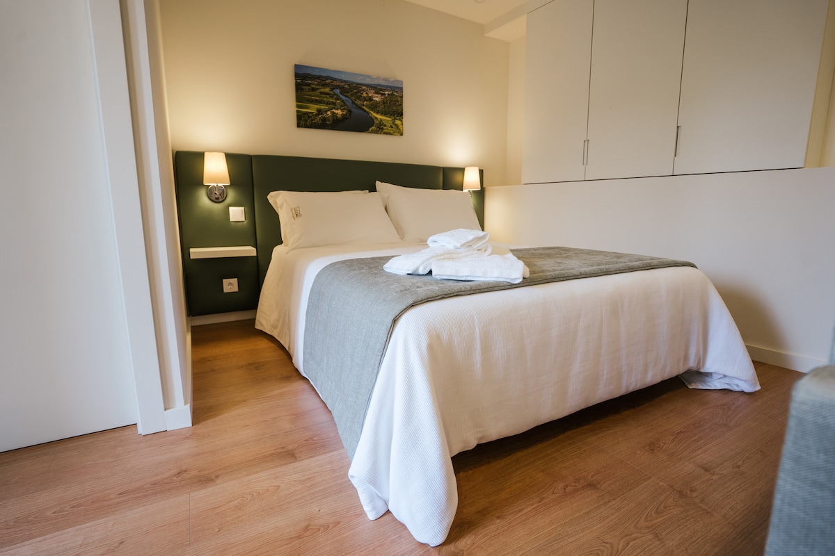 Ətraf mühitə amplitud bəxş edən panoramik pəncərələrlə təbii işığın və heyrətamiz mənzərələrin girişinə imkan verir. Burada qonaq otağı, tam təchiz olunmuş yemək sahəsi, geniş və duş kabinəsi olan müstəqil yataq otağı, yataq otağında hamam otağı və açıq hava platformasında cakuzi SPA var. Dağda və üzüm bağları və meşələrlə əhatə olunmuş villalar Monte dos Xistos Quimarães şəhərinin tarixi mərkəzindən 10 km məsafədə yerləşən mövqedən zövq alın