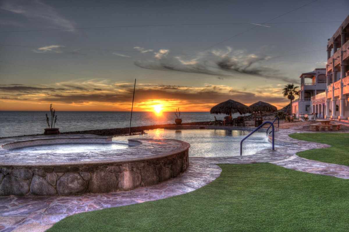 Lüks və Super Təmiz Çimərliyə yaxın kondominium. Puerto Peñasco/Rocky Point-də ən çox axtarılan kurort olan Gözəl, 5 ulduzlu, Bella Sirenada 1 Bd/1Ba. BÖYÜK verandadan Kortes dənizinə baxışlar. Qurman mətbəxi, çarpayısı olan geniş əsas yataq otağı, dəbdəbəli yataq dəsti və dəsmallar, gəzinti dolabı. 2 böyük düz ekranlı televizor. Təkmilləşdirilmiş hava lüks döşəyi. 5 hovuz, üzgüçülük çubuğu/yeməyi, 2 qızdırılmış, 2 Hot-tub, tennis kortu, yaşıl qoyma. Hər yerdə sulu tropik landşaft. Playa Paraiso-ya aşiq olun!