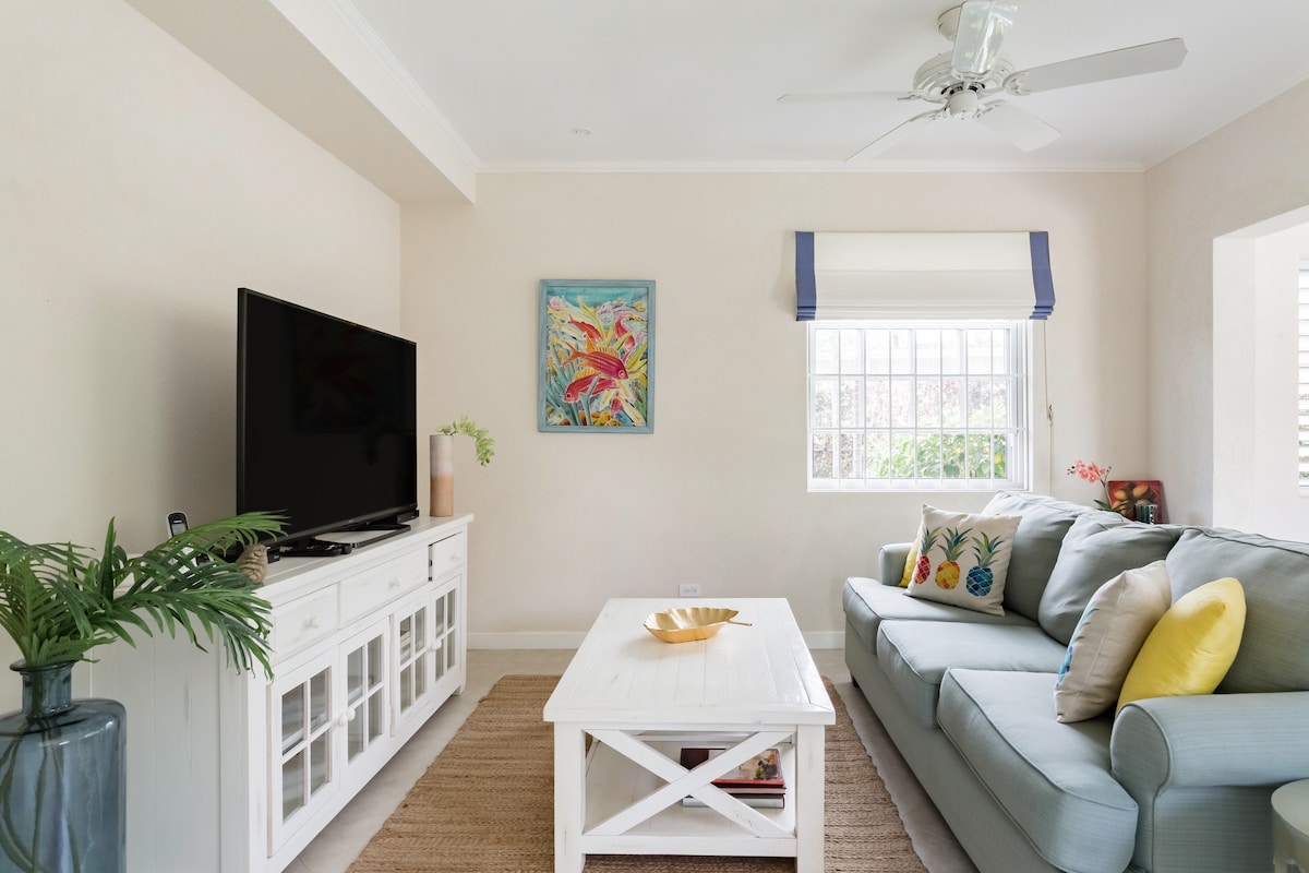 Walk out of your private front door, a few steps through the private garden, and ten seconds later you can be bathing in the Caribbean! "Sunset" is one of six one- and two-bedroom apartments - recently refurbished for comfort but retaining a unique Barbadian vibe. We are across the road from a supermarket, local take-away, GP and pharmacy, and on a convenient bus route to anywhere you want to go. But basically what you'll fall in love with are the breathtaking views.
