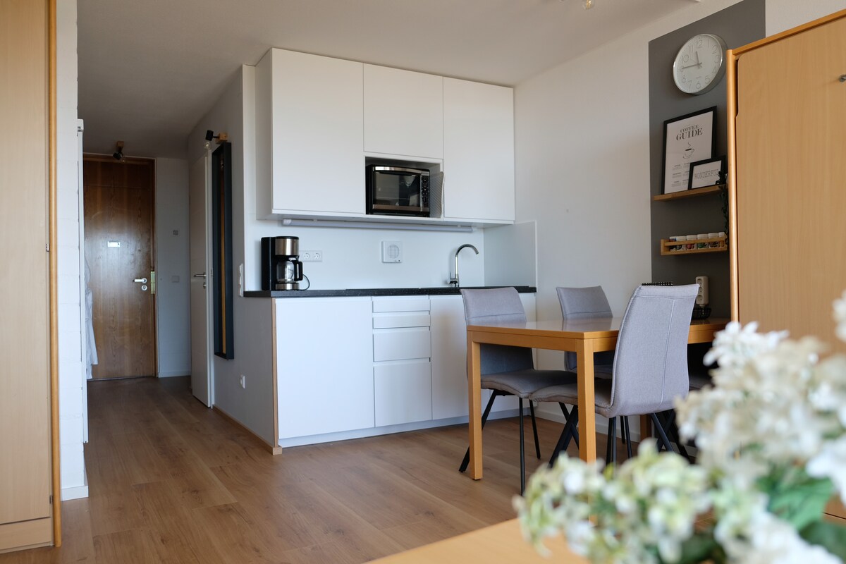 This is a refurbished apartment with a fantastic view – perfect for enjoying the sunset. Located in the Bavarian Forest, within the Predigtstuhl Resort. The resort offers a wide range of facilities, including indoor and outdoor swimming pools, saunas, gym, playgrounds etc – ideal for couples and families with kids. The surrounding area has plenty to offer all year round – countless hiking and cycling routes, ski and cross-country trails, a climbing park, nearby amusement parks, and much more.