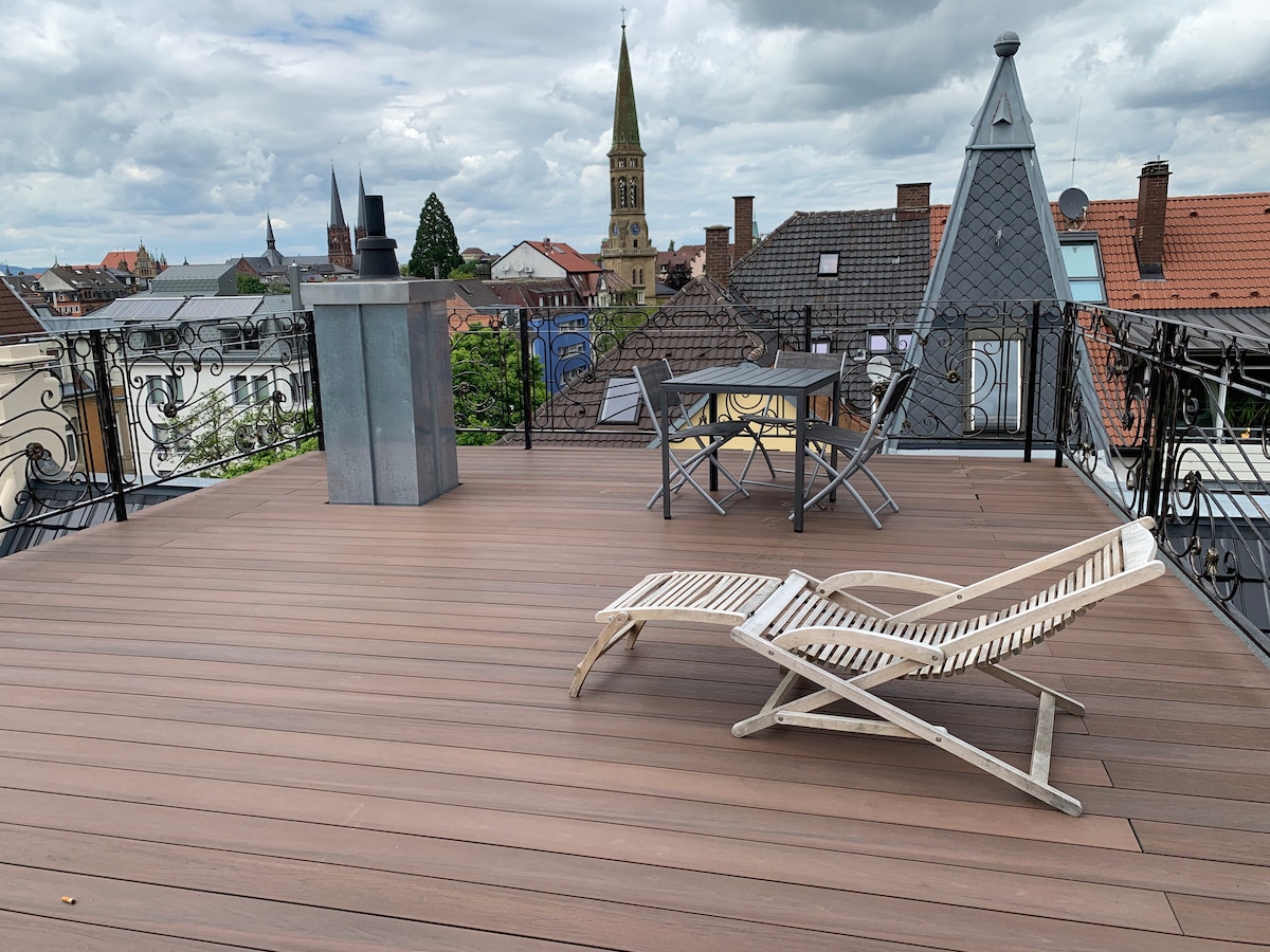 Sadalanan və tamamilə təmir edilmiş Gründerzeit villasında Frayburqun Wiehre rayonunda gözəl, dolama və sevərək təchiz edilmiş çardaq mənzili. Frayburq Kafedralına və Qara Meşəyə baxan geniş dam terrasında səhər yeməyi var. Yataq otaqları qəribə daşlar və tısbağalardır və maili tavanlara görə qapılarla kilidlənə BİLMƏZ.