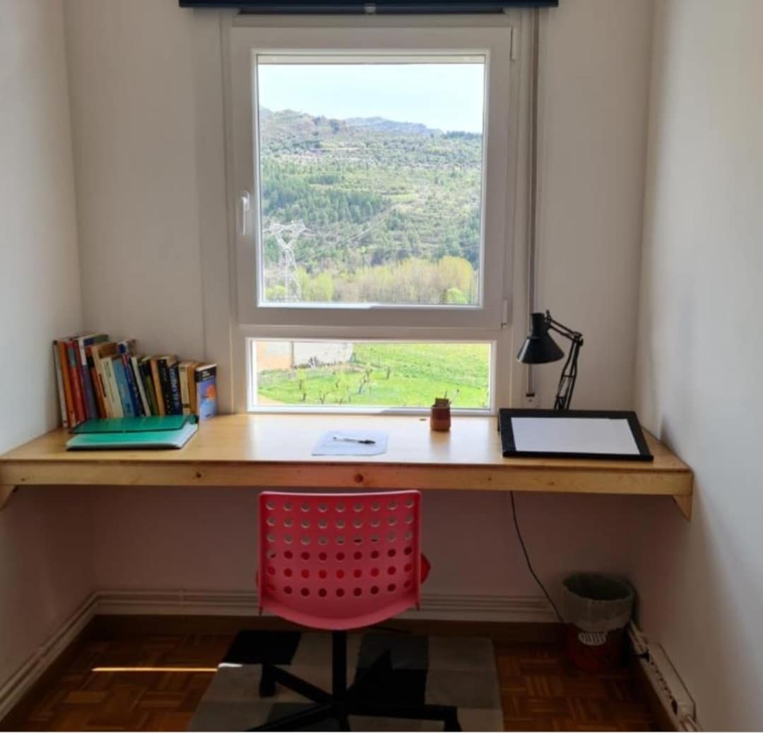 1873-cü il ferma evinin köhnə anbarında yerləşən mənzil. Eyni evdə yaşayır və Pau və Vəfaya ev sahibliyi edirlər. Rahat və ailə ab-havası. Kataloniyanın Şimal-Qərbində, Montsec dağlarının ətəyində, PrePirineoda kiçik bir kənddə yerləşir. Barselonadan avtomobillə 1h30min, alış-veriş üçün lazım olan hər şeyi tapdığınız Artesa de Seqre-dən isə iki dəqiqəlik məsafədə. Kənd təcrübəsi, şəhərlə əlaqəni kəsmək, kənd və təbiətlə təmasda vaxt keçirmək üçün idealdır.