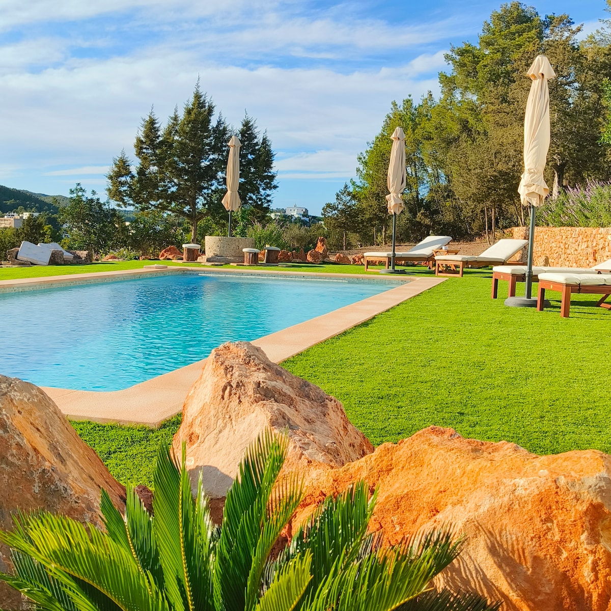Adamızın ən füsunkar kəndlərindən biri olan Santa Gertrudisdən cəmi 8 km məsafədə, təbiət və sülhlə əhatə olunmuş bu fantastik villada sulu Ibizan təbiətindən zövq alın. Adanın mərkəzinə yaxın olan mövqeyi bu villanı ağ adanın istənilən küncünə yerləşmək üçün ideal bir yerə çevirir.