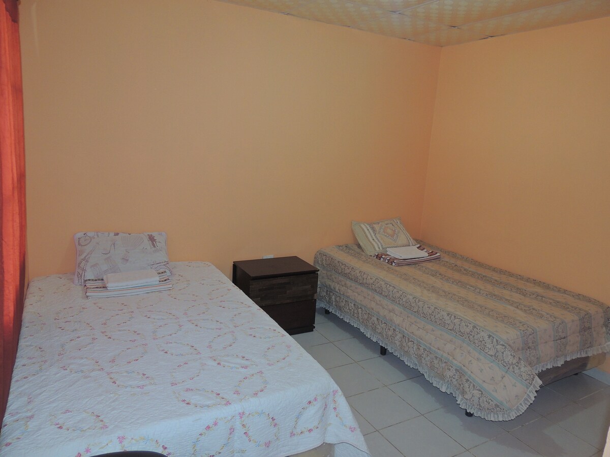 Santa-Ananın tarixi mərkəzində 4 nəfərlik bu Paylaşılan otaqda rahat və komfortlu qonaqlamanın dadını çıxarın. Şəhəri və ətraf əraziləri araşdırdıqdan sonra sakit, kənd mühitində dincəlmək istəyən ailələr, dostlar və ya səyahətçilər üçün idealdır. Otaqda iki rahat ikinəfərlik çarpayı, paltar asılqanı və hər zaman təmiz və rahatlığınız üçün təchiz olunmuş ümumi hamam və duşlar var. Nəzərə alın ki, göstərilən qiymət adambaşına hesablanıb.
