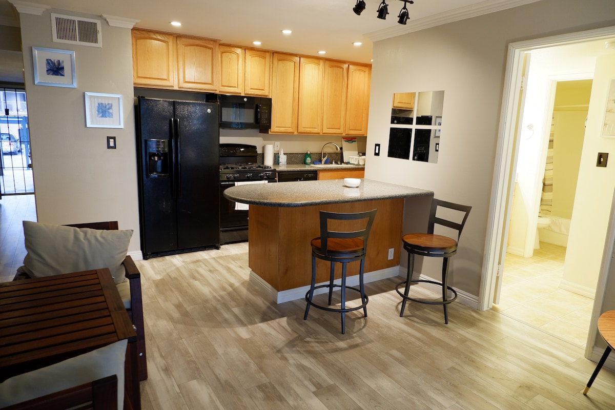 Santa-Barbarada əla təmir edilmiş və peşəkarlıqla dizayn edilmiş iki yataq otağı 2 hamam evi! Mənzildə yalnız bir şərikli divarı və verandası və cakuzisi olan ayrıca arxa həyəti olan ev hiss olunur. Sakit bir çimərlikdə rahat bir gün üçün Mesa Leyn Addımlarına cəmi yarım mil məsafə qət edin və ya Mesa Verde, Mesa Burger kimi əsrarəngiz restoranlara və Lazy Acres kimi supermarketlərə sadəcə bir blokda gəzin. 2 yataq otağı, tək səviyyəli dupleks bloku 4-ə qədər rahat yatır və əla qonaqlama üçün tam təchiz olunub.