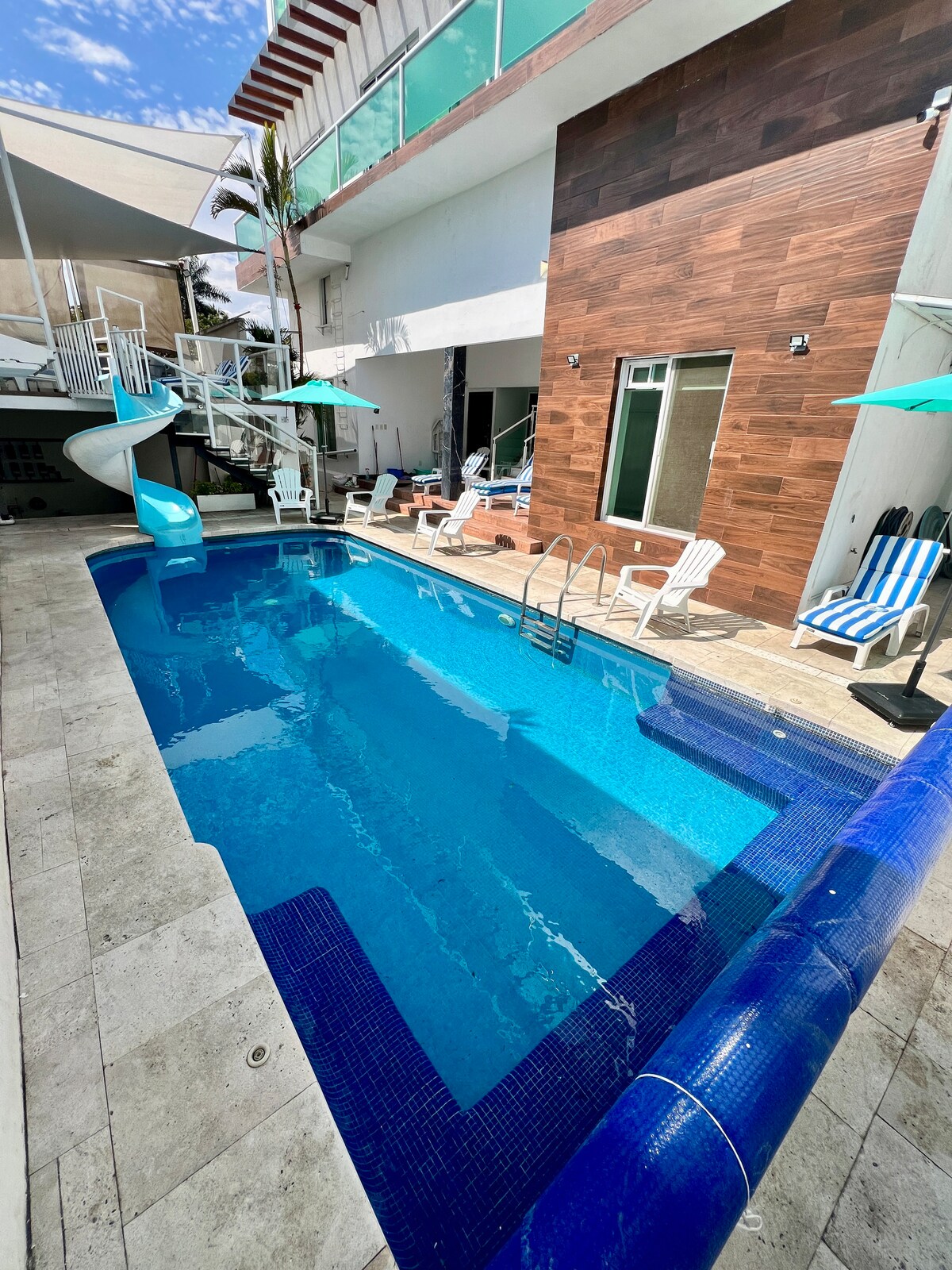 Marfanın Məkan xüsusiyyətləri: - 150m2 sin🪜con🛗 - Avtonom giriş🔑 ❌ - Lüks kulinariya assadoru️ - Tavan və döşəmə ventilyatorları olan 3 yataq otağı🛌 - Avtomatlaşdırılmış çalarlar 2 - 1/2 hamam otağı 🧼🚾 🚾 -Danışan məkan və yemək sahəsi. 🛋️ - 1 Terras və 2 eyvan.🪴 - Televizor otağı 📺 - Camaşırxana otağı. 🧺 - Virtual köməkçi. Amazon Alexa.️🗓️🎵💡 - Wi-Fi 325mb -Şəkili üzgüçülük hovuzu🏊♀️ ☀️ - 1 örtülü parkinq yeri🚘 -24 saat təhlükəsizlik👮🏽♂️ Kuernavakanın mərkəzində incəsənət və texnologiya atmosferi olan məkanda olacaqsınız.
