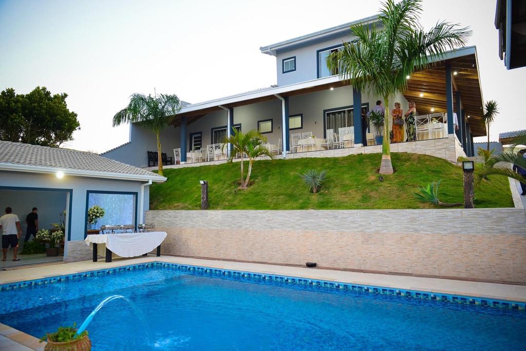 Bizim Chácara hər kəs üçün xoş bir yerdir, ailə ölçüsü. 25 nəfərin yatması üçün 11 otaq mövcuddur 7 hamam otağı 3 Soyuducu, içki düşkünü olmaq 2 Soba, Adi və Taxta Seca Sauna Uşaqlar - pula, top hovuzu və digər oyuncaqları olan sahə Barzinho Mini Fazendinha qurman barbekü sahəsi kvadra Üzgüçülük Hovuzu aptekə, bazara, qaz stansiyasına və s. yaxın ərazidə yerləşirik... çirkli yol seçimi yoxdur 30 avtomobil üçün qapalı parkinq