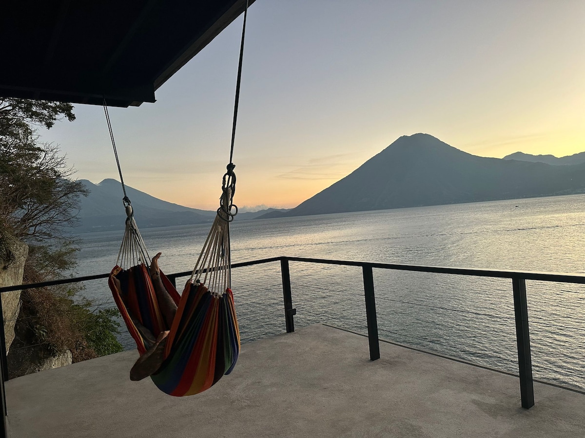 Qvatemala Dağlarında səmada üzmək hissi ilə çox unikal və müasir lüks ev (1700 m) - 24 saat elektrik enerjisi (litium/solar) ilə maneəsiz Starlink bağlantısı -Bütün pəncərələr 5 vulkanonun nəfəs kəsən mənzərələrini və daim dəyişən "rəsm" in "sonsuzluq gölünü qarşılamaq üçün tam açıqdır Kran üzərində filtrlənmiş bulaq suyu Bağlı və ya açıq qapı təcrübəsi üçün vanna otağı cakuzisi -12 m2 kantilevered hamak göyərtə-net stargaze və istirahət üçün