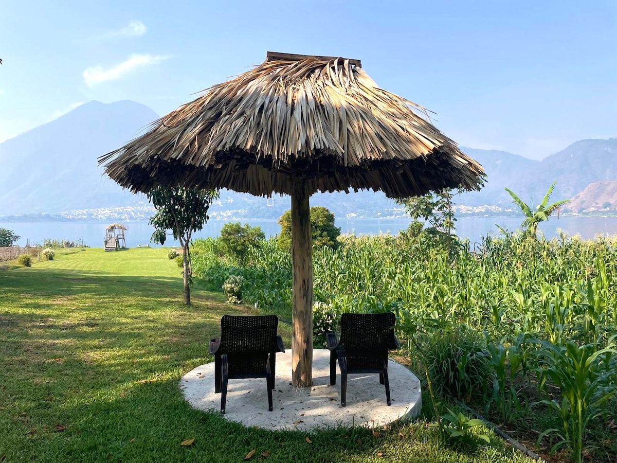 Bu füsunkar studiya casita, Atitlan gölü üzərində günəşin doğuşu və ay doğuşunun ən yaxşı mənzərələri, eləcə də fantastik kanyon mənzərələri olan dağ yamacında yerləşir. Çox özəl, sakit, sevimli bağlar, mətbəx. Bir nəfər və ya bir neçə nəfər üçün mükəmməldir. Min. 2 gün Santa Kruz yalnız qayıqla əlçatandır və gözəlliyi və sakitliyi ilə tanınır. Göl sahili boyunca yaxşı yerli restoranlar, üstəgəl kayak icarələri və təpəmizin ətəyində əla üzmə var. Ərazimizdə gəzinti də gözəldir.