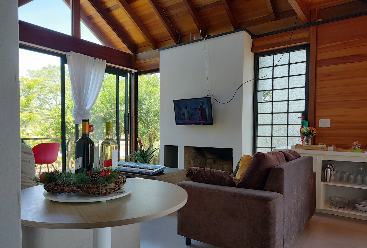 AVISO: o lago está sendo desassoreado e é possível que esteja vazio. Veja o sol se pôr sobre o lago a partir da sala de entrada. Curta bons momentos na Jacuzzi e tenha uma noite romântica em frente à lareira. Casa bem decorada em amplo terreno 30x40 de frente para o lago. Aceitamos apenas duas pessoas. Não locamos o espaço para festas, comemorações, churrascos e confraternizações. Não aceitamos pet. Estamos em frente ao lago do Parque Pinhal, local de fácil acesso em bairro tranquilo.
