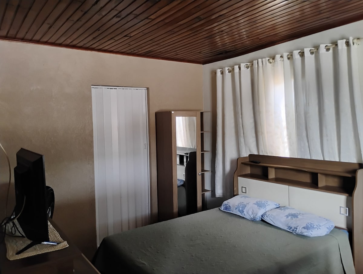 İkiqat divarları olan, geniş örtülü və açıq hava məkanı olan, meyvə ağacları ilə əhatə olunmuş, taxta ilə tikilmiş rahat ev. Qonaq otağında buxarı, mətbəxdə odun sobası, yataq otaqlarında split kondisioner var. Bütün stansiyalar üçün idealdır. İtaara (2 km) və Santa-Mariya (10 km) şəhərlərinə çıxışı olan BR-158 Avtomobil Yolu ilə 400 metr məsafədə yerləşir.