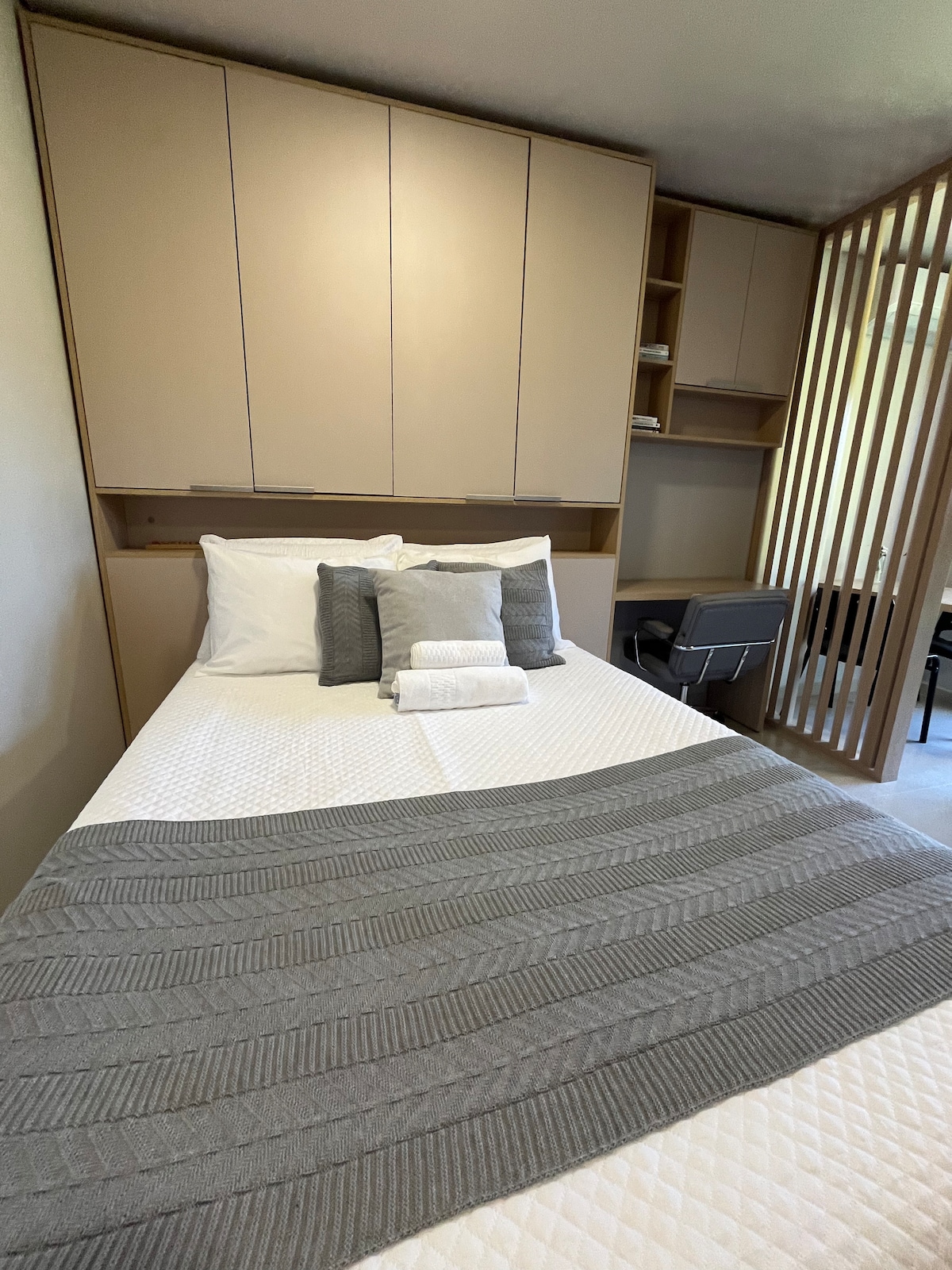 UFSM ilə sərhəd olan yeni studiya. Bir neçə dəqiqəlik piyada gəzintidən sonra artıq kampusdasınız. Liftli binanın ən üst mərtəbəsində yerləşən məkan rahatlıq, praktiklik və istirahət təklif etmək üçün düşünülmüş şəkildə dizayn edilib. Müasir, tam, sakit və rahat mühit, balkon və əla qonaqlama üçün lazım olan hər şey. İki nəfər yerləşir, lazım olduqda üçüncü şəxs üçün əlavə döşək seçimi var. Aylıq icarə ilə maraqlanırsınızsa, danışmaq üçün mənə zəng edin.