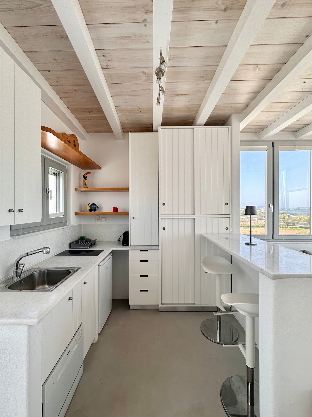 Dəniz məftillərini açın və sərinlədicini havalandırın, sonra isə sakit su hövzəsində şəhər beton mətbəx dəzgahında qəlyanaltı hazırlayın. Maneəsiz okean mənzərəli səssiz gün batımı içkiləri üçün geniş, yarpaqlı verandaya doğru addımlayın! Mənzil səhər gəzintisi üçün qumlu çimərliyin yanında, Naousa mərkəzindən və onun əsas meydanından 2 dəqiqəlik məsafədə yerləşir. Mağazalar, restoranlar, barlar və klublar piyada məsafədədir, lakin ərazi çox sakit və sakitdir.