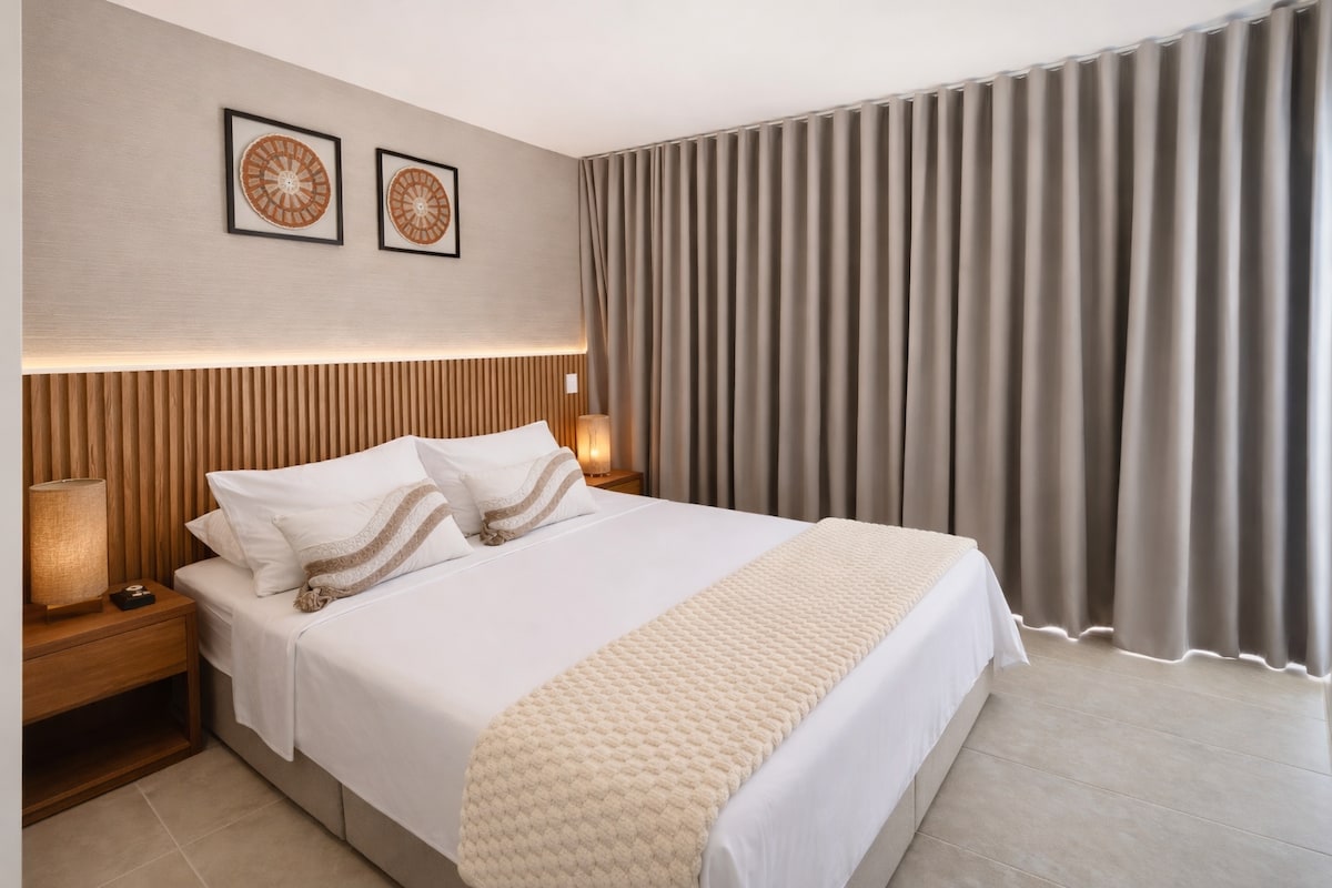 Porto Horizonte piso 14-də aparta süitası, cütlük kimi istirahət edəcəyiniz gözəl mənzərə, bu cakuzidə günəşin batmasını təmtəraqlı Karib dənizi ilə seyr edən bir neçə masajdan zövq ala bilərsiniz. Sevimli serialınızdan zövq ala biləcəyiniz 55 televizorlu 150-179 sm-lik çarpayı. Nömrədə təchiz olunmuş mətbəx var ki, zəngin səhər yeməyi hazırlaya və səhər qəhvəniz olsun. İsti su və sakit olmaq üçün lazım olan hər şey. Bina inanılmaz hovuzla təchiz olunub.