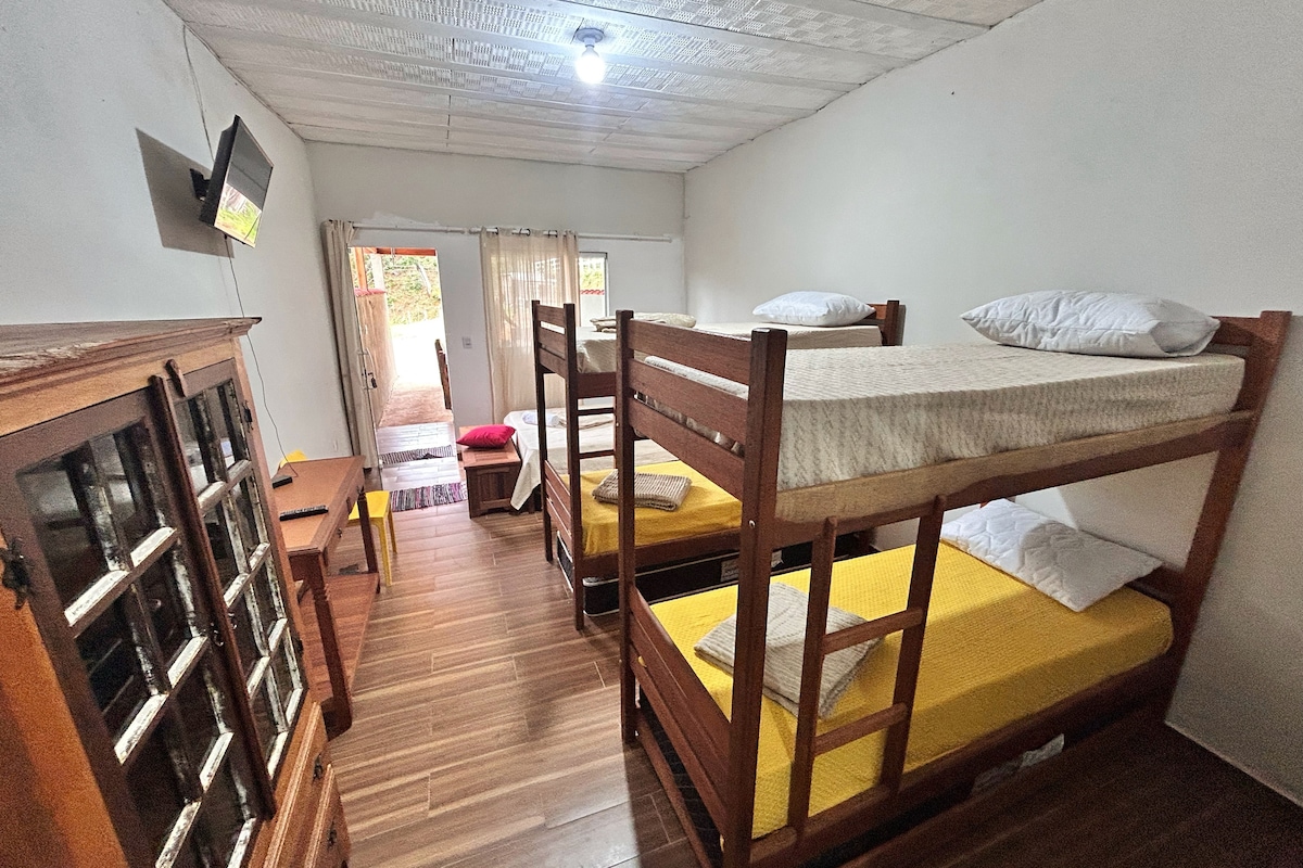 Cütlüklər, ailələr və səmimi şənliklər üçün ideal olan bu məkan Lima Duarte-MG-dəki ən gözəl şəlalələrə yaxın olan São Sebastião do Monte Verde adlı cazibədar kənddə yerləşir. Gözəl dağ mənzərəli üzgüçülük hovuzu. Bron edərkən eksklüzivlikdən yararlanın (paylaşılan məkanlar yoxdur). Otağınızı siz seçirsiniz! Dağlara baxan buxarı ilə cazibədar suitlər, yığcam dağ evləri, avadanlıqla təchiz olunmuş mətbəx, odun sobası, açıq havada yemək yemə sahəsi, kabab, üzgüçülük hovuzu, bilyard, stolüstü futbol, dondurucu, şəxsi parkinq.