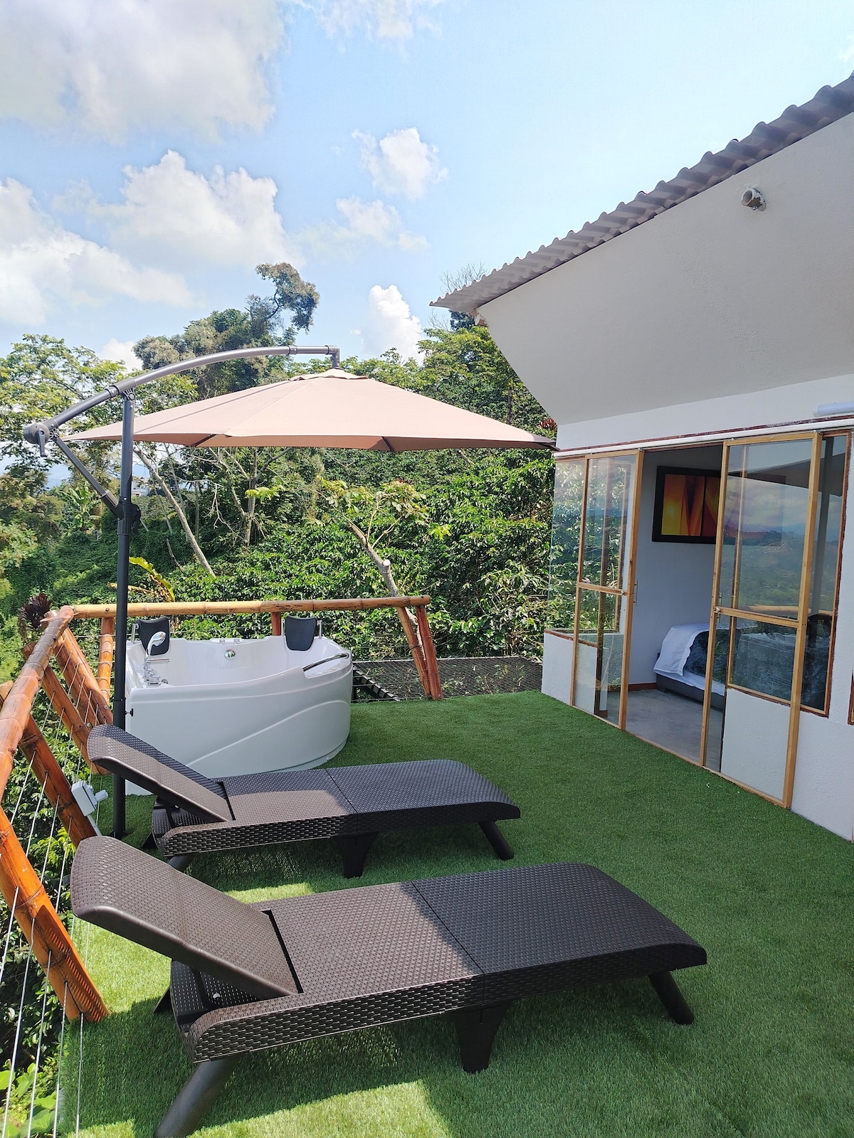 Suitimizin qürubu əla mənzərəsi olan xüsusi cakuzidən, katamaran torundan, Kraliça ölçülü çarpayısı olan bir rahat yataq otağından, divan çarpayısı olan QONAQ otağından, tam vanna otağından, balkondan, yemək otağından və ümumi sahəsi 60 kvadrat metr olan tam təchiz olunmuş mətbəxdən ibarətdir. GRAN VISTA Glamping və Suites Pereyranın ən yaxşı mənzərəsi olan və şəhər mərkəzindən və hava limanından cəmi 15 dəqiqəlik məsafədə yerləşən ölkə qonaqlamasıdır. Səhər yeməyi daxildir. Nahar, şam yeməyi və kokteyllər üçün qeyri-məcburi incə menyu.