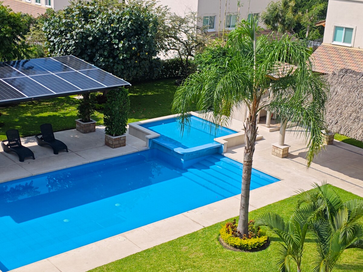 Üzgüçülük hovuzu və şəxsi bağı olan geniş ev. Maksimum 10 qonaq doluluq, lakin qiymət qonaqlayan insanların sayına uyğun olaraq müəyyən edilir. Hovuzda günəş hüceyrələri var. Bu idman növünü sevənlər üçün qolf klubunun daxilində. Uşaqlarla səyahət edən və həftəsonu istirahət etmək istəyən ailələr üçün idealdır. Yaxınlıqda restoranlar və özünəxidmət var. Tədbir zallarına, zooloji, su parkına, sehrli kəndlərə və Tequesquitengo laquna yaxın
