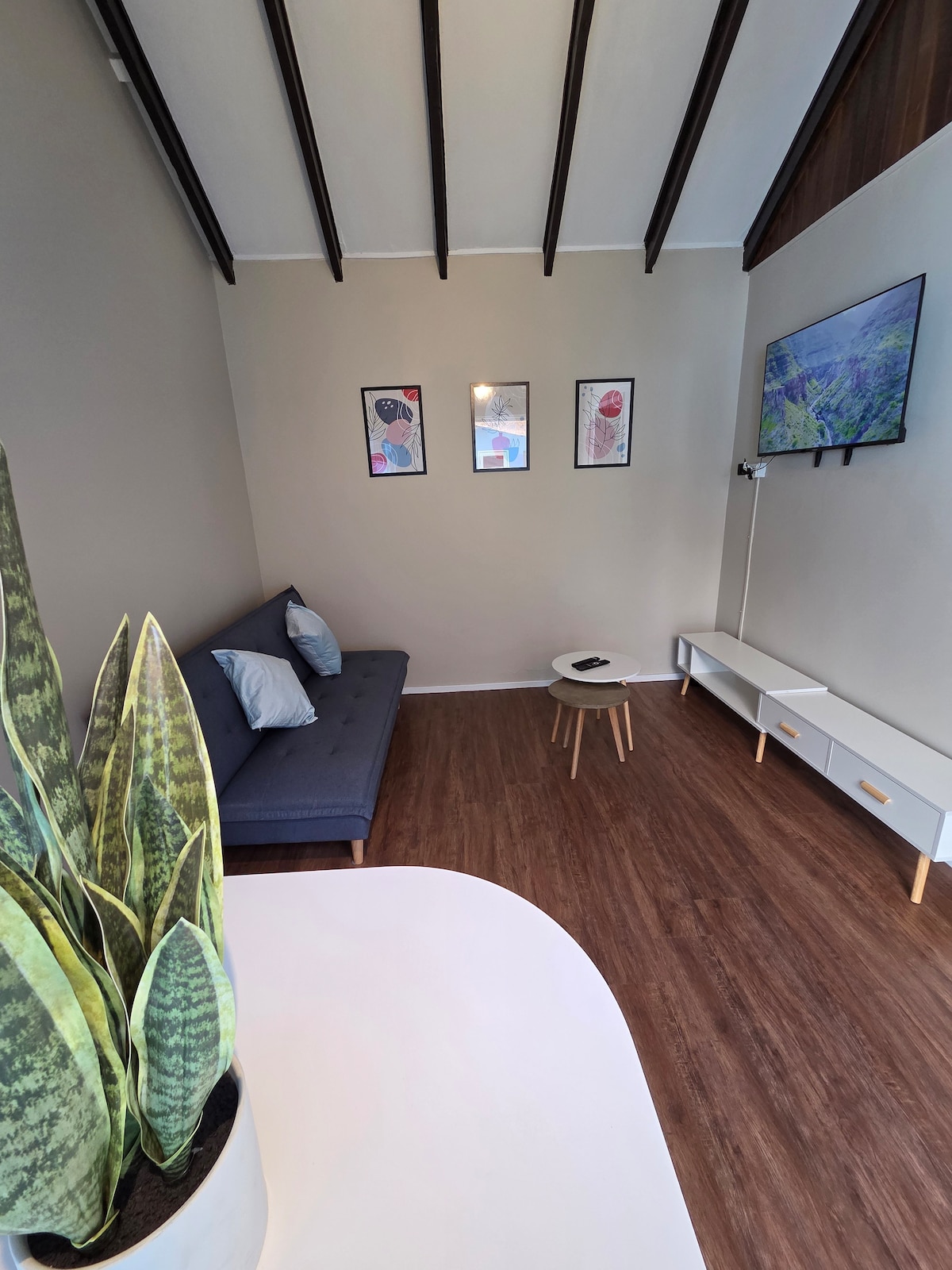 “Valle de la Luna” at CASA CECILIA is a private oasis in the middle of the city. This cozy 41m2 apartment features a warm and inviting décor that promotes tranquility. It includes a full kitchen, living area, and desk designed for your comfort. From its large private terrace, you can admire breathtaking views and sunsets. On the first floor, a high-end restaurant provides the opportunity to indulge in exquisite culinary options.