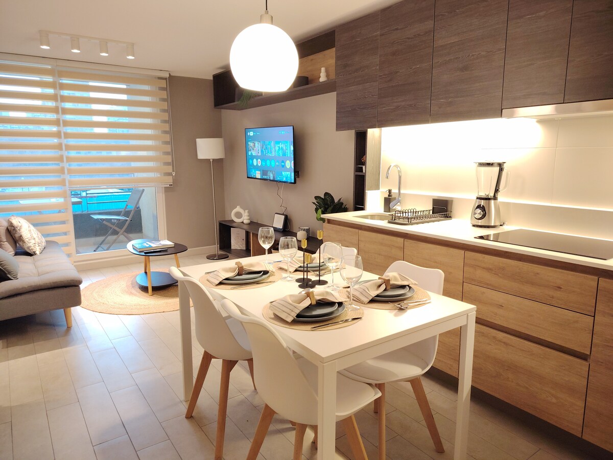 Üslub və komfortda qonaqlamanızdan zövq alın 4 nəfər. Nə tapacaqsınız: A/C Soyuq/İstilik Kral Yataqlı 1 Yataq otağı 1 kral divan çarpayısı 1 tam vanna otağı şampun, kondisioner, bədən sabunu və saç qurutma maşını ilə Təchiz olunmuş mətbəx: qəhvə maşını, mikrodalğalı soba, toster, çaydan və soba. Sevimli yeməklərinizi hazırlamaq üçün idealdır. Uzaqdan səyahət edənlər üçün mükəmməl iş sahəsi, Wi-Fi və iş masası Əlavə rahatlıq üçün mənzilin içərisində paltaryuyan/kurutucu. Ayrıca və pulsuz parkinq Üzgüçülük hovuzu İdman zalı. Quinço