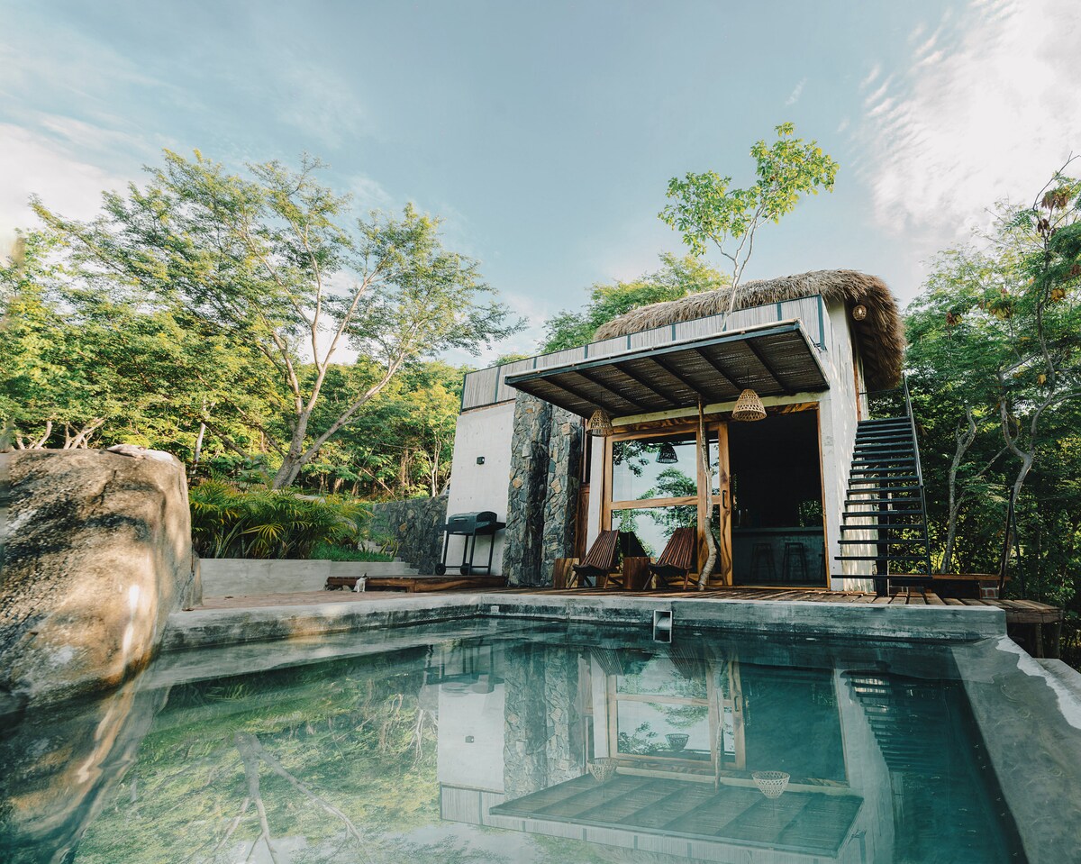 Ağaclarla əhatə olunmuş gözəl villa, sevdiyiniz insanla zövq almaq üçün ayrıca hovuz və ya özünüzü tapmaq üçün ideal olan Kasa tutudakı Oaxakan Sahilinin təbiətindən zövq alın! Yataq otağından və onun terraslarından gözəl okean mənzərələrindən zövq alın, ağacdan salınmış bağımızda təbiətə yaxınlaşın və cütlük kimi zövq almaq üçün zəngin yemək hazırlayın. Gözəl ab-hava ilə dolu təcrübə təklif edirik, üstəlik ayrıca cığırımızla giriş imkanı əldə edə bilərsiniz!