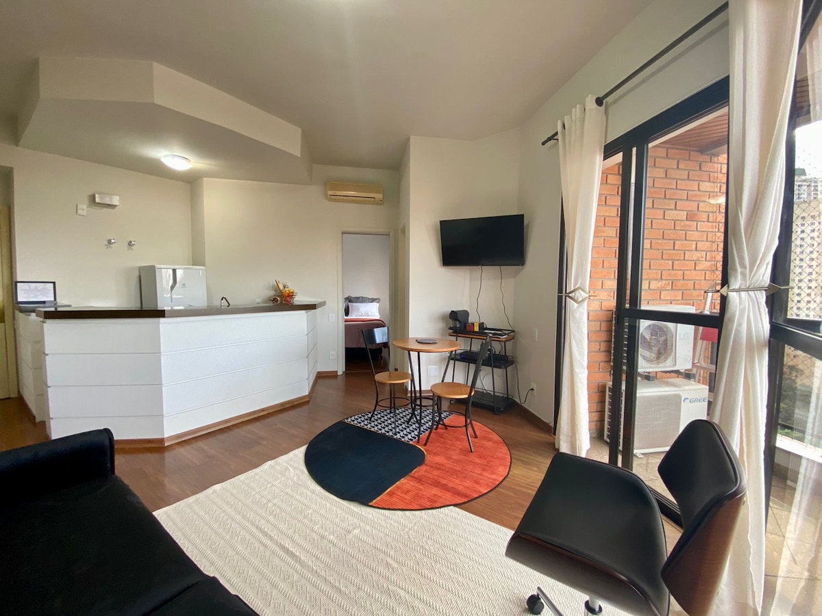 Stylish 50 m² apt. located at Bela Vista, has 24hr doorman. 2 bedrooms (only 1 with AC, and queen bed, the second one is quite small and can be used as an office, fitting a double-sized sofa-bed) and 1 bathroom. With amazing views from every window, it is a great place to work and relax. The private jet-tube at the balcony is a fantastic spot to enjoy the city views. Ideal for couples, professionals or small families looking for comfort, convenience, and one of the best views in the city.