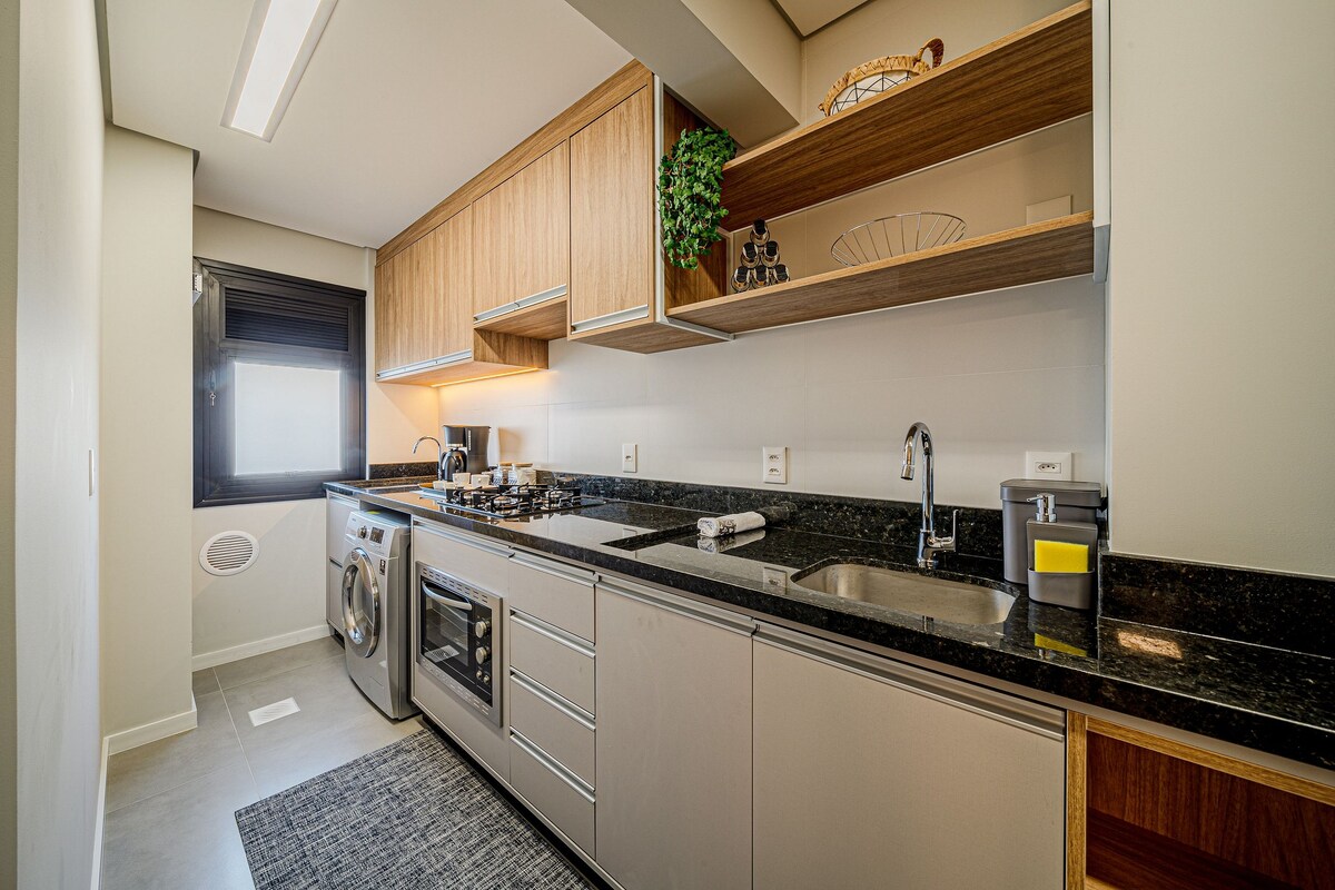 Mueller Ticarət Mərkəzindən 150 metr məsafədə yerləşən Joinville mərkəzində möhtəşəm mənzildə 1 süita və 1 yataq otağı və hamam-tualet var. Yemək bişirmək istəyənlər üçün müasir avadanlığı (induksiya peçi, mikrodalğalı soba, elektrik sobası, qəhvə maşını, soyuducu) olan tam mətbəx mövcuddur. Mənzil 18-ci mərtəbədədir və balkonda 42"ağıllı televizor, fiber optik internet və barbekü var. Bütöv mənzildə təhlükəsizlik torları ilə. Qoşulmanın Qastronomik Yolundan 150 metr məsafədə.