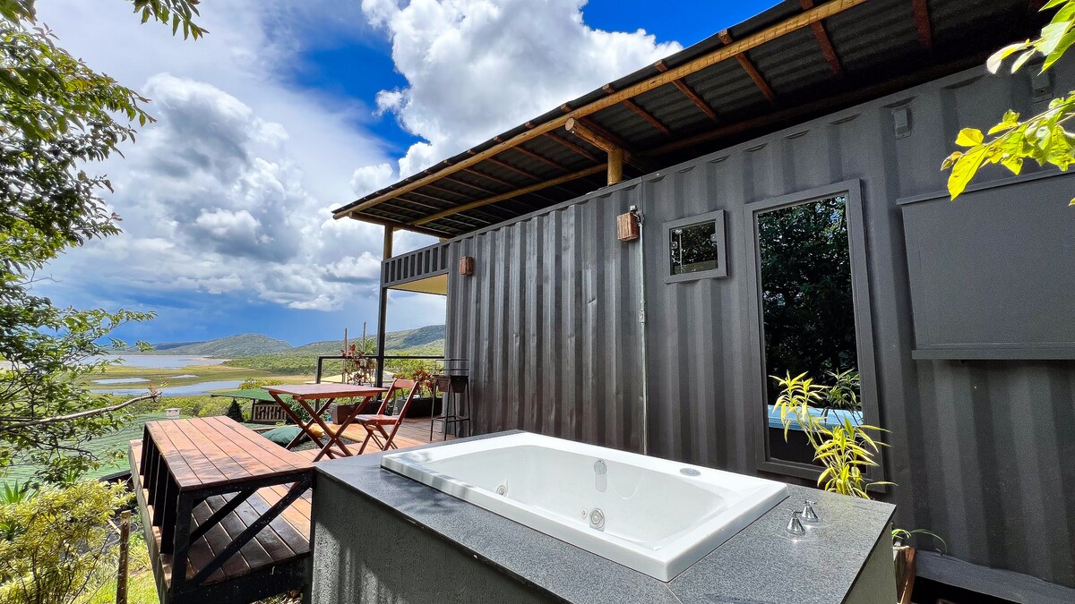 Minas Geraisin ortasında yerləşən İntendente dağ silsiləsinin ortasındakı dəniz konteyneri. Belo Horizonte-dən iki saatlıq məsafədə ekoloji, qeyri-adi və rahat qonaqlama sahəsində inanılmaz təcrübə tapa bilərsiniz. Qonaqlamanız üçün düzgün təchiz edilmiş bir neçə konteyneri davamlı ekoloji təmiz doklara çevirmişik. Bizim doklarda nəqliyyat, görünüş, detallar, qoxular və səslər, bədəninizi və ruhunuzu dincəlin, batareyalarınızı doldurun və ya cığırlardakı enerjini doldurun.
