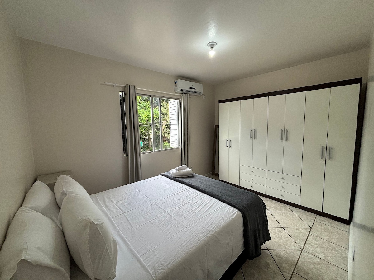 Akonçeqo və praktiklik bir yerdə! Bir nəfər, cütlük və hətta Kiçik Ailələr (maksimum 3 nəfər) üçün mükəmməldir. Qonaqlama yerimiz kondisionerli otaq, Netflix və Gb oyunu olan televizor, təchiz olunmuş mətbəx və Wi-Fi təklif edir. Biz Shopping Itaguaçu (850m), Centro Multiuso de São José (2,7km), Hard Rock Café (14,8km) və Florianópolis Konqres Mərkəzi (7,8km), eləcə də bazarlar, apteklər və restoranların yaxınlığında yerləşirik. Həmçinin Şimaldan Cənuba möhtəşəm çimərlikləri kəşf etmək üçün idealdır.
