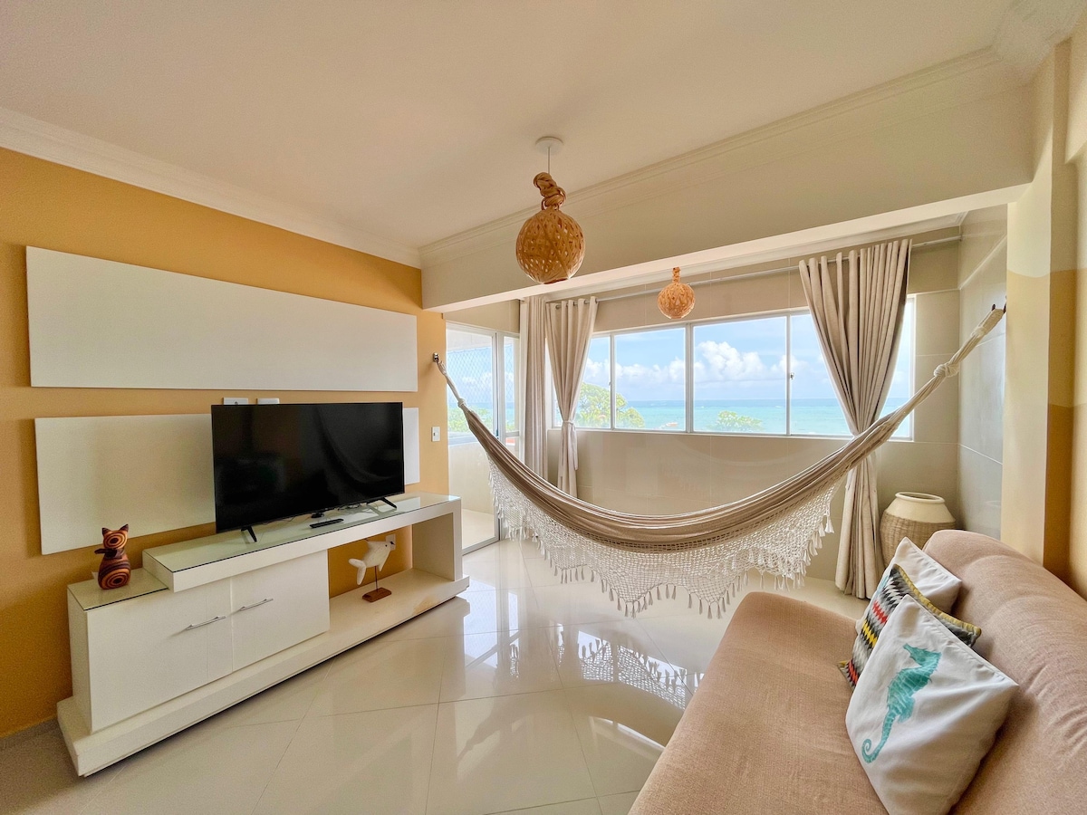 Flat reformado, linda decoração e vista ao mar.