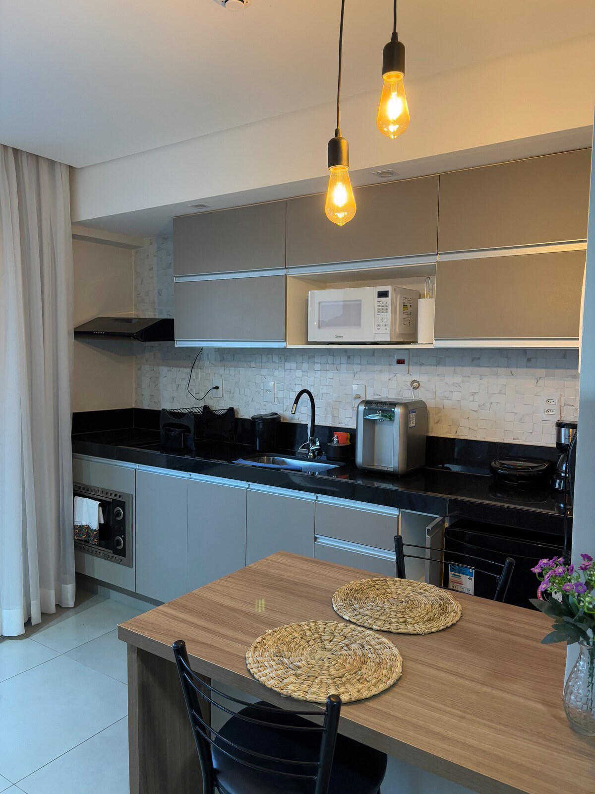 San-Lourençonun mərkəzində, Parque das Águas, restoran və ticarətin yanında rahat və müasir Mənzil! Mənzildə ikinəfərlik çarpayı və 4 nəfərə qədər qonağın yerləşdiyi rahat divan çarpayı var. 2 televizor dəsti, havaüfürücü, mikrodalğalı soba, induksiya piştaxtası, dəsmallar və yataq dəsti olan tam mətbəx ilə təchiz olunub. Kondominium sevimli şəhərimizdə təhlükəsiz və xoş qonaqlamanı təmin edən 24 saat qəbulu ilə əla infrastruktura malikdir.