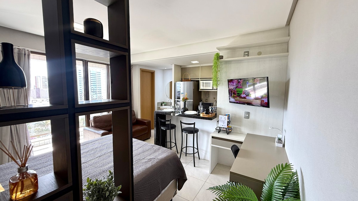 Studio moderno e aconchegante com vista para o mar, localizado na Av. dos Holandeses, no Calhau. O condomínio oferece área de lazer completa com piscina, academia, mercadinho e portaria 24h. O apê possui Wi-Fi, Smart TV, cozinha equipada e ambiente climatizado. Perto da praia, bares e restaurantes, é ideal para quem busca conforto e praticidade em São Luís