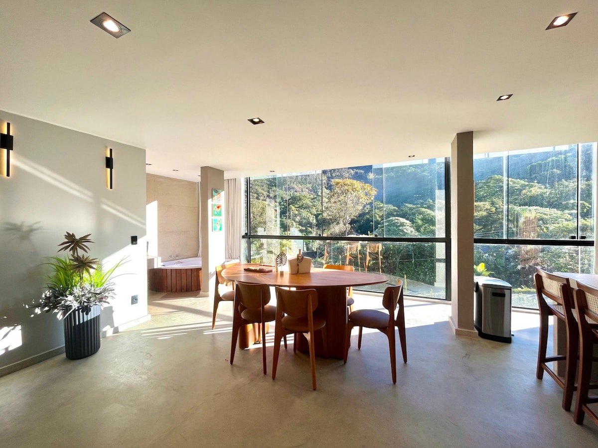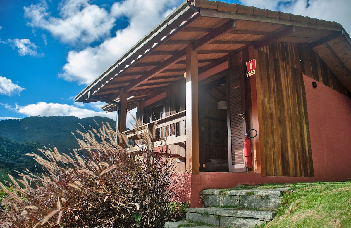 Gəlin və dağlıq ərazilərin təklif etdiyi məxfilik, rahatlıq və istilikdən zövq alın! San-Pedro da Serra/Nova Friburqodan 5 km məsafədə Burle Marks Landşaftının dizayn etdiyi bağı və valehedici mənzərəsi olan taxta dağ evlərində qonaqlamağı təklif edirik. - Cakuzi - Dağ evində aşpaz, tava, yemək qabları, qəhvə maşını, elektrik sobası, qəhvə tozu, şəkər tozu, dadlandırıcı, minibar, boşqablar, çəngəl-bıçaq və s. var. Səhər yeməyi vermirik. - Saat 14:00 -a qədər giriş edin və 12:00 -a qədər çıxış edin